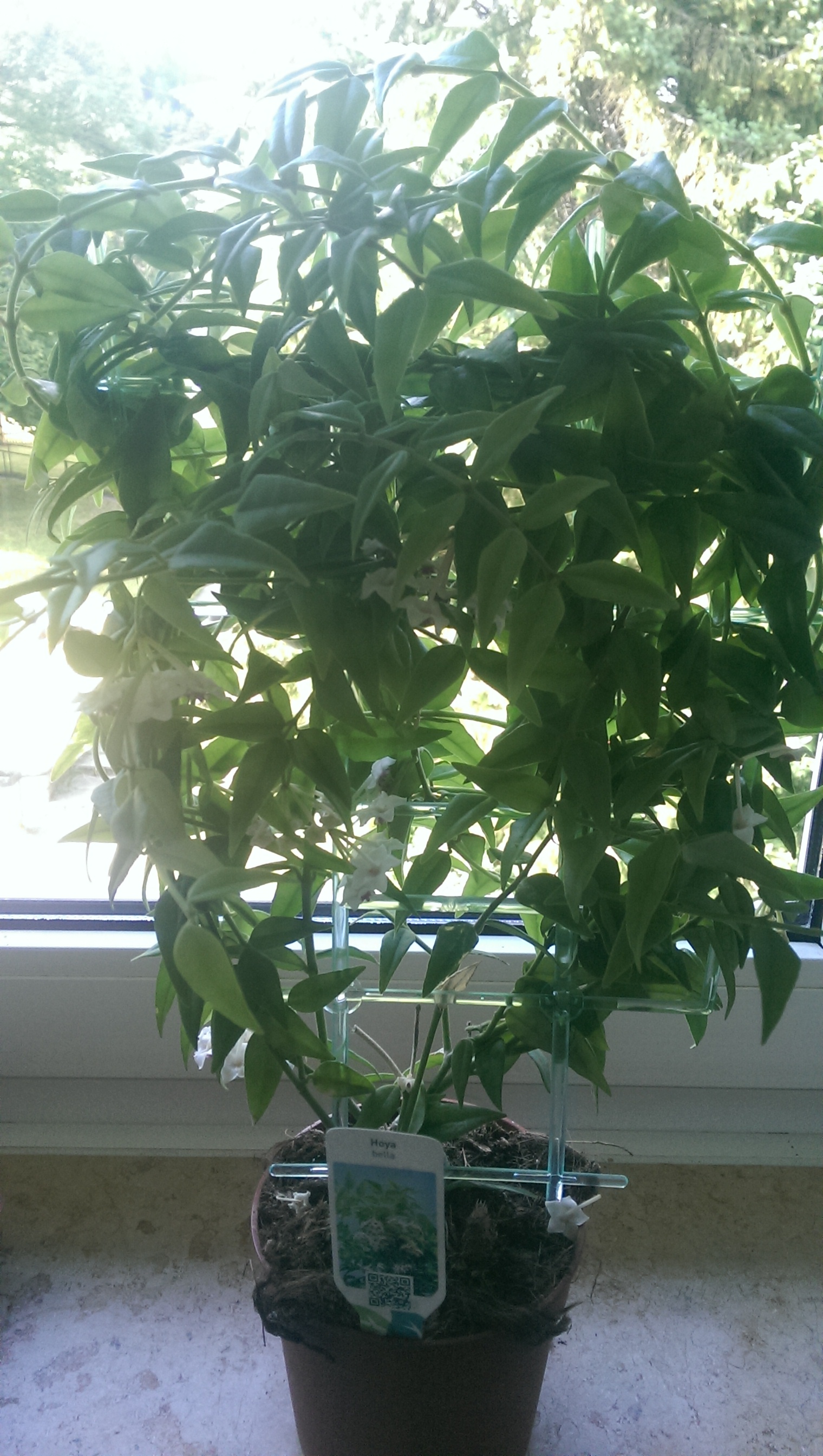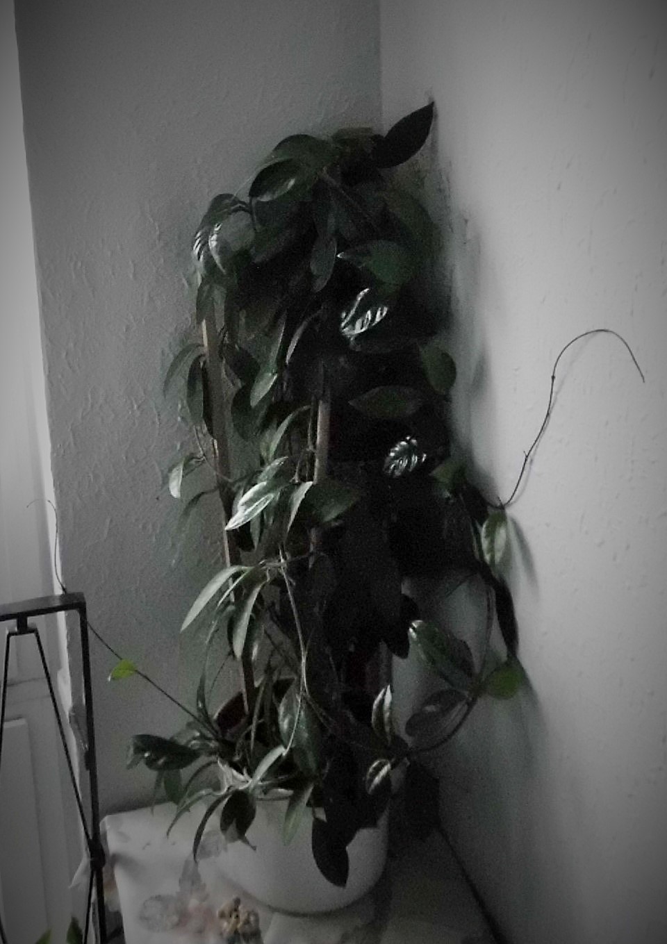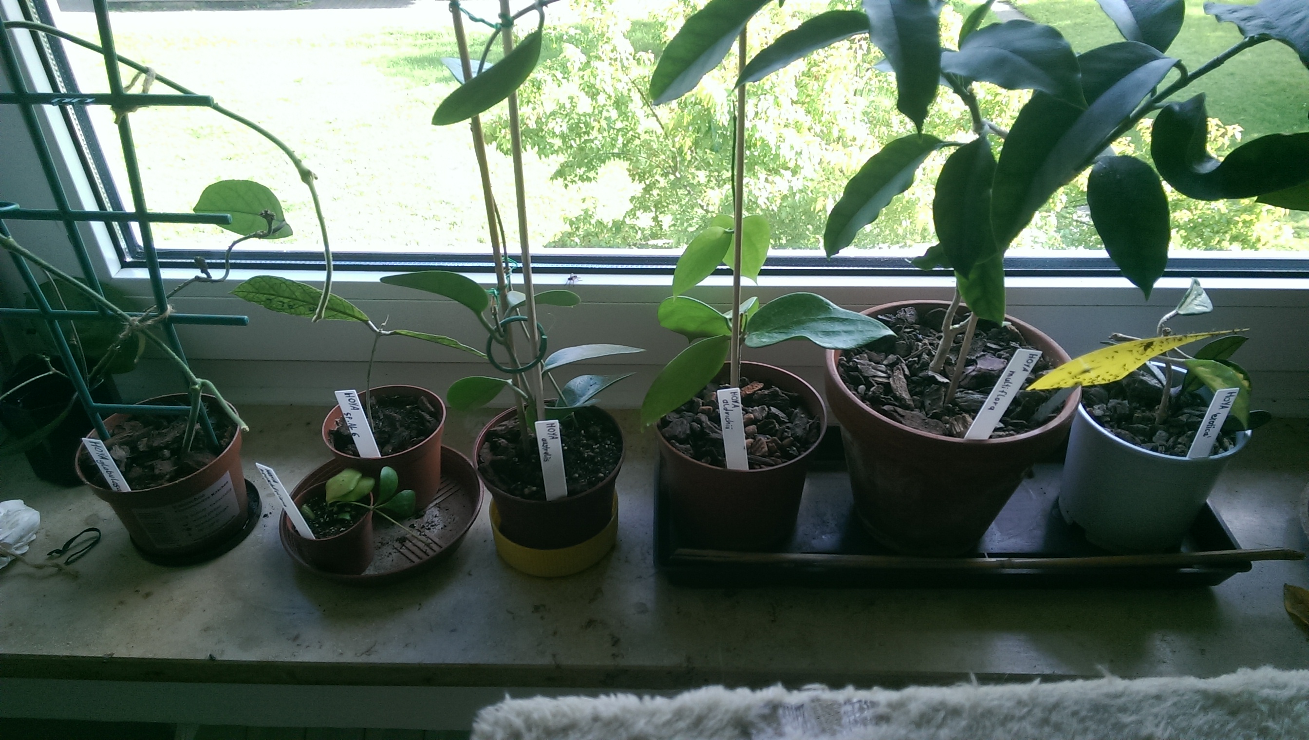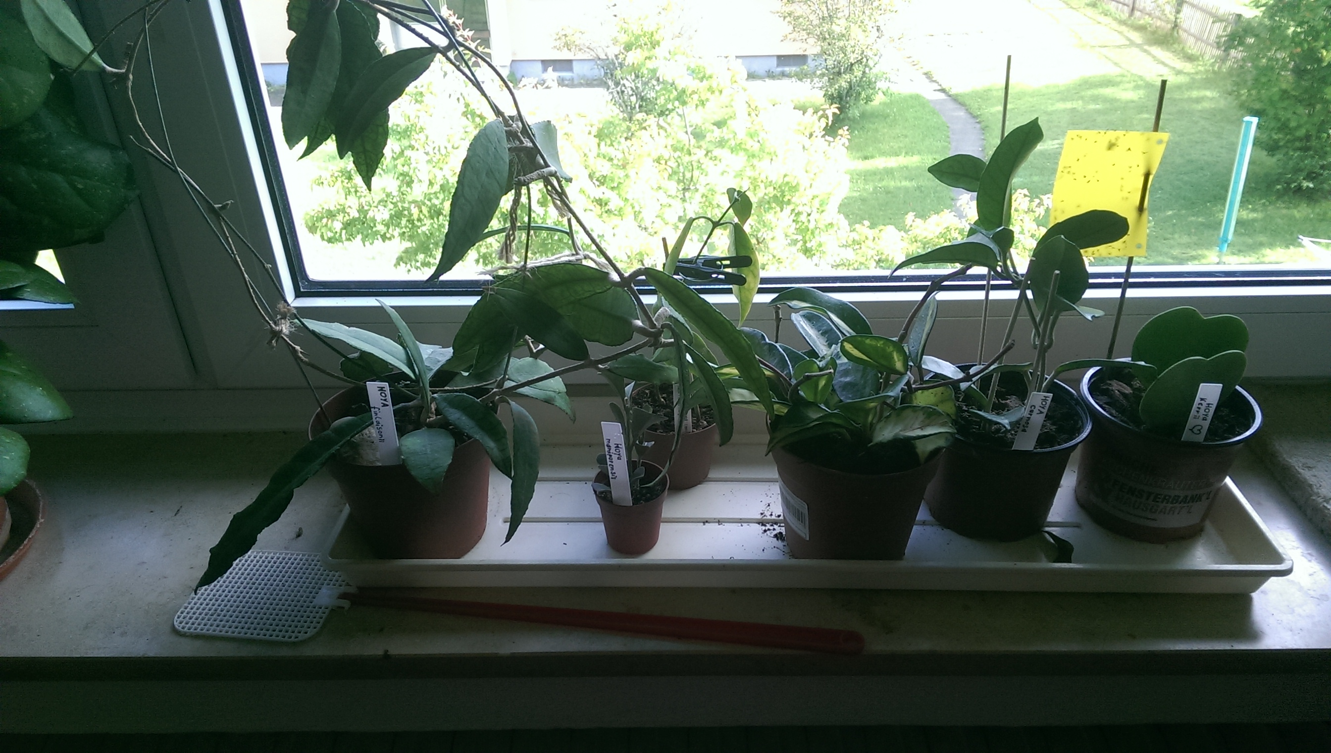 Und ich wette, so einzwei weitere daneben würden sich ganz wunderprächtig machen! Wärmstens empfehlen kann ich Hoya linearis, Hoya memoria und neuesten Erkenntnissen im Wohnzimmerfeldversuch nach auch Hoya krohniana - wachsen allesamt wie Unkraut und haben gut riechende Blüten
