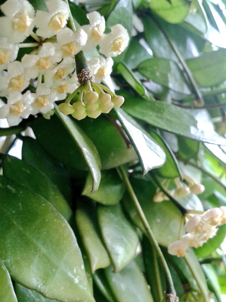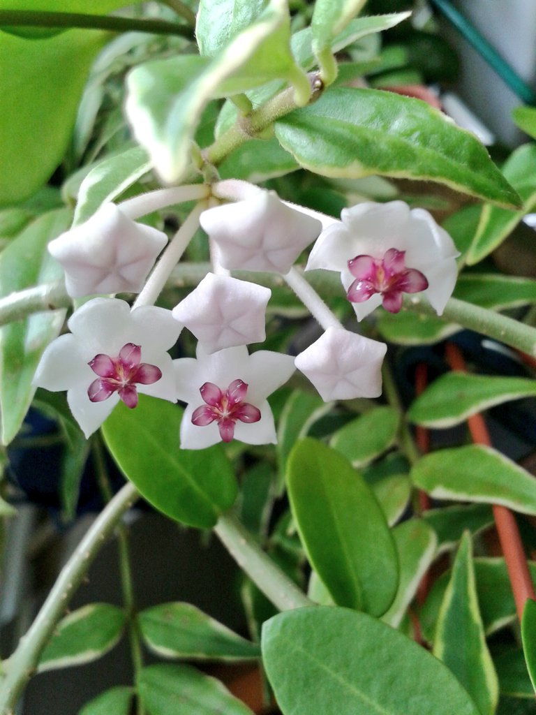 "Meine" Hausflur-Hoya kann mit euren Schönheiten nicht mithalten aber sie hat es auch nicht leicht dort in der Ecke, ständig rennt irgendwer an ihr vorbei. Letztes Jahr hat die Gute wirklich noch die ganze Flurecke ausgefüllt.