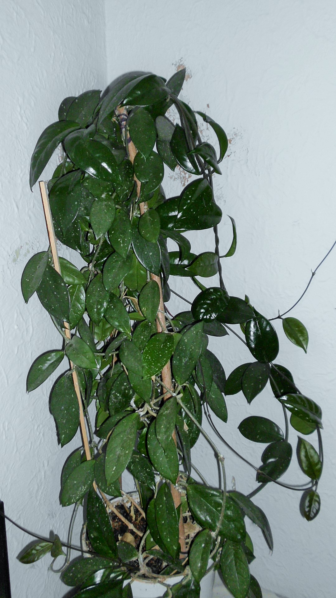 Und ich wette, so einzwei weitere daneben würden sich ganz wunderprächtig machen! Wärmstens empfehlen kann ich Hoya linearis, Hoya memoria und neuesten Erkenntnissen im Wohnzimmerfeldversuch nach auch Hoya krohniana - wachsen allesamt wie Unkraut und haben gut riechende Blüten