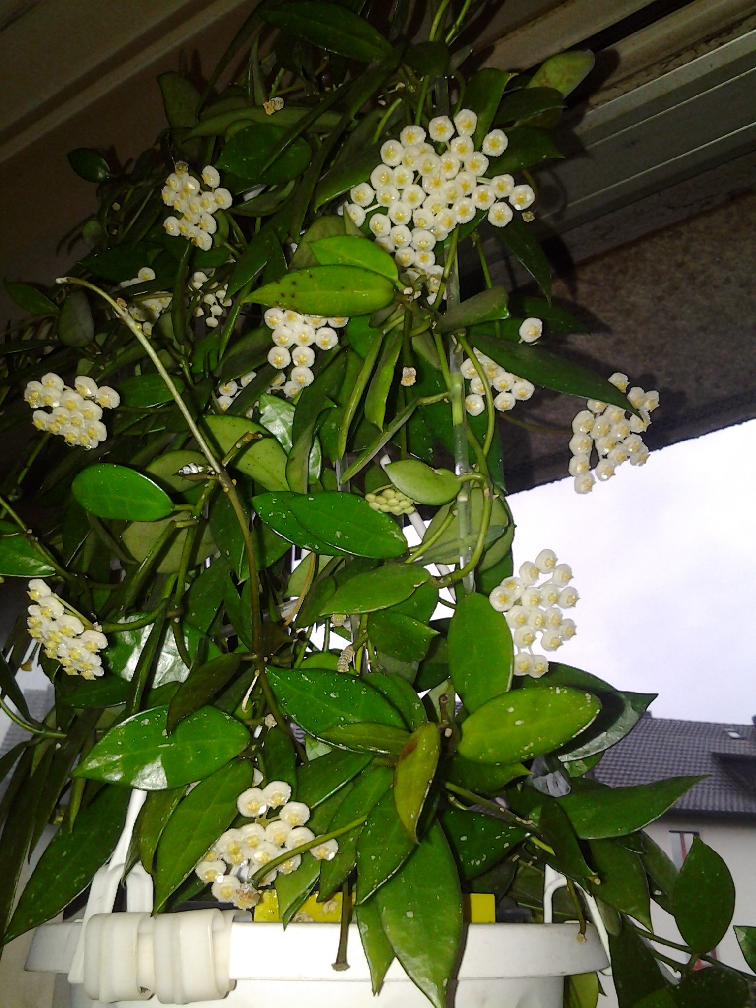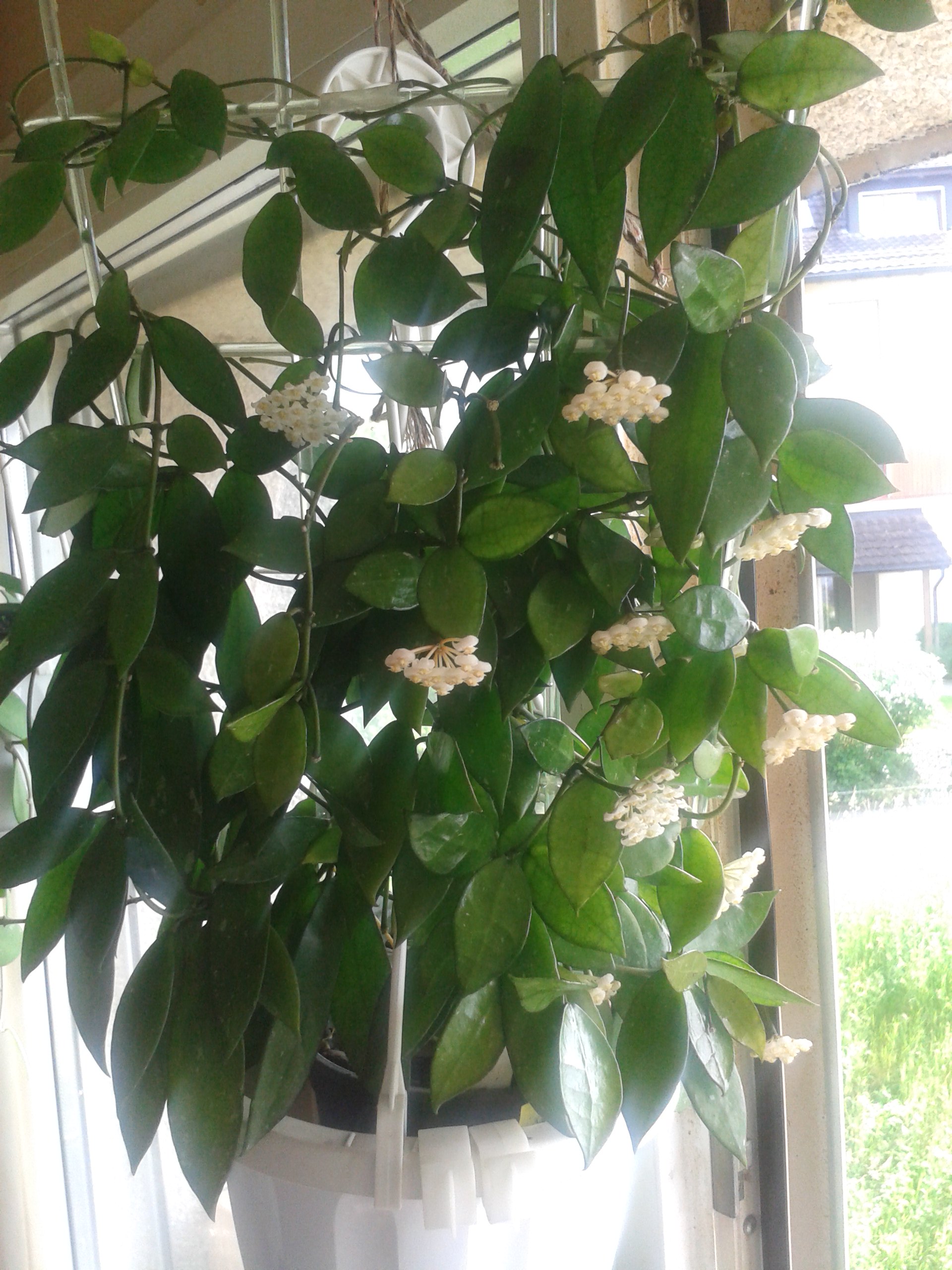 Eve, meinen Hoyas ist es ausgesprochen gut bekommen, mal 2 Wochen nicht von mir betreut zu werden Habe einem guten Freund, der extra einen grossen Umweg auf dem Arbeitsweg auf sich genommen hat, eine exakte Giessliste gemacht für die Zeit während meines Urlaubs, und als ich nach Hause kam, begrüssten mich meine Hoyas mit neuen Trieben, Blättern, Blüten und Pedunkeln. Ok, vielleicht war auch das Waschküchenwetter (sehr warm, sonnig, feucht) dran schuld, dass die einen solchen Wachstumssprung gemacht haben
