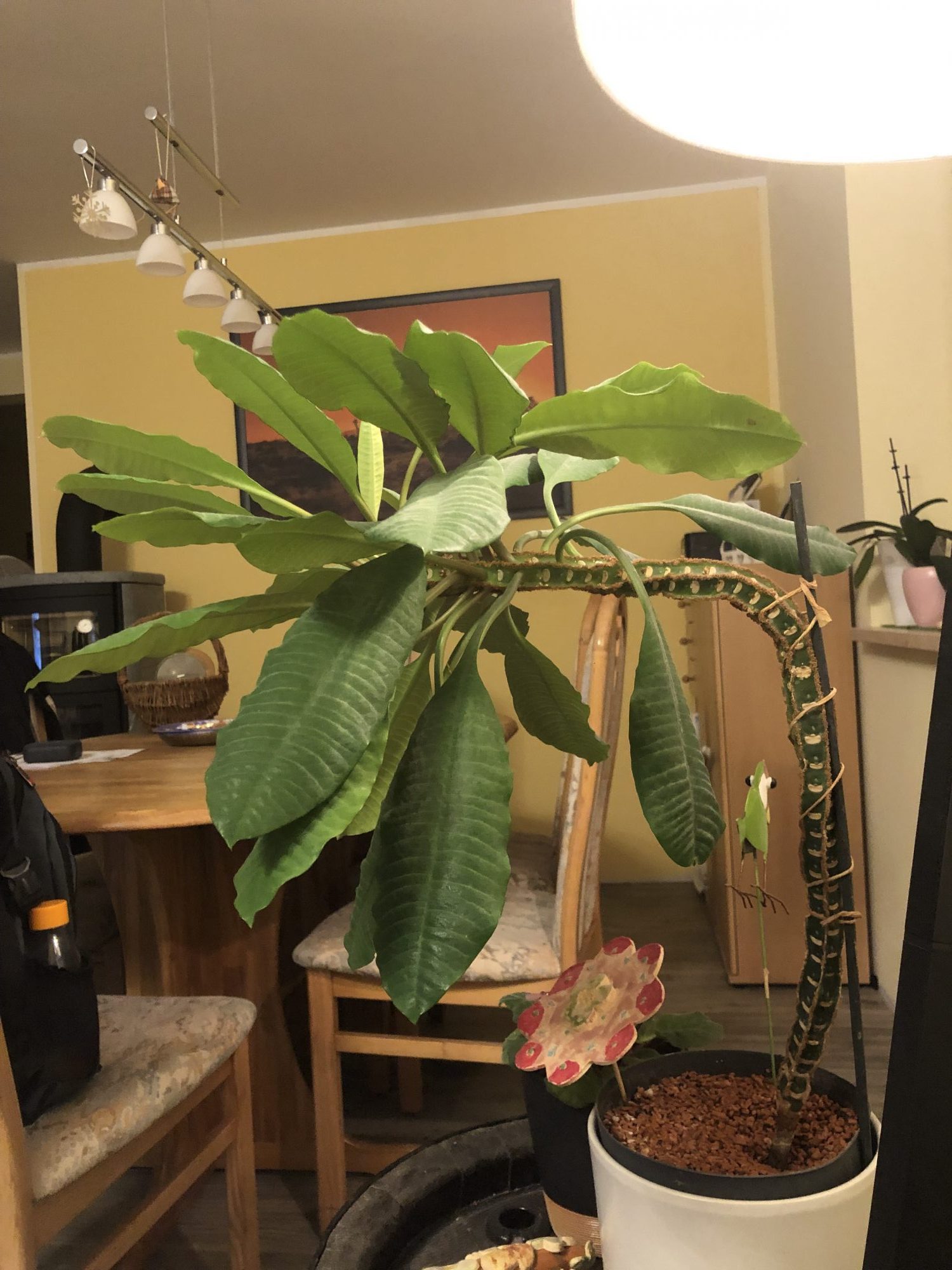 ich würde vermuten das Wasser fehlt. ist der stamm eher weich? wenn ja ist die erde trocken/ feucht/nass? wenn sie trocken ist dann würde ich mal kräftig gießen. ist die erde feucht bis nass würde ich mal nach den wurzeln schauen. damit sie wieder einigeraßen gerade wird würde ich sie nochmal abstützen. normalerweise sollte sie sich aber selbst halten. wo steht sie. steht sie hell genug?