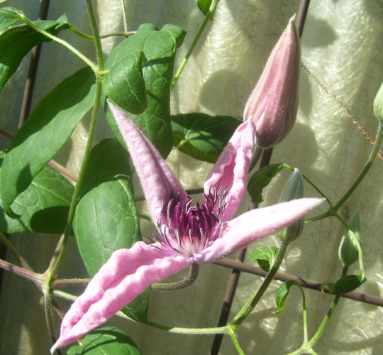 ich wollte ja auch mal meine Clematis vorstellen: also das ist eine aus dem Aldi für 1,99 vom letzten Jahr, Sie hat schon 5 Blütenansätze, ist enorm gewachsen, aber blüht noch nicht.