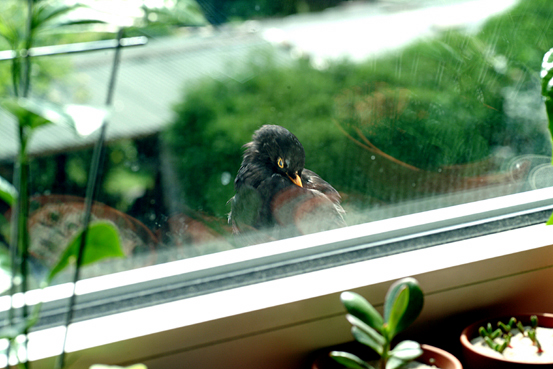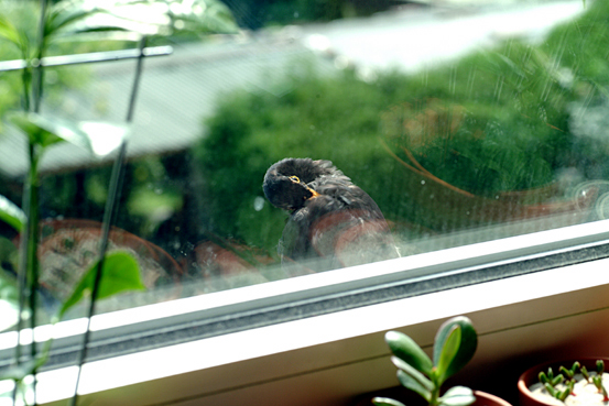 Da muss es schön gewesen sein, denn er hat sich nicht nur da geputzt, sondern auch furchtbar laut gesungen (klang durch das gekippte Fenster, als würde er in meinem Schlafzimmer sitzen).