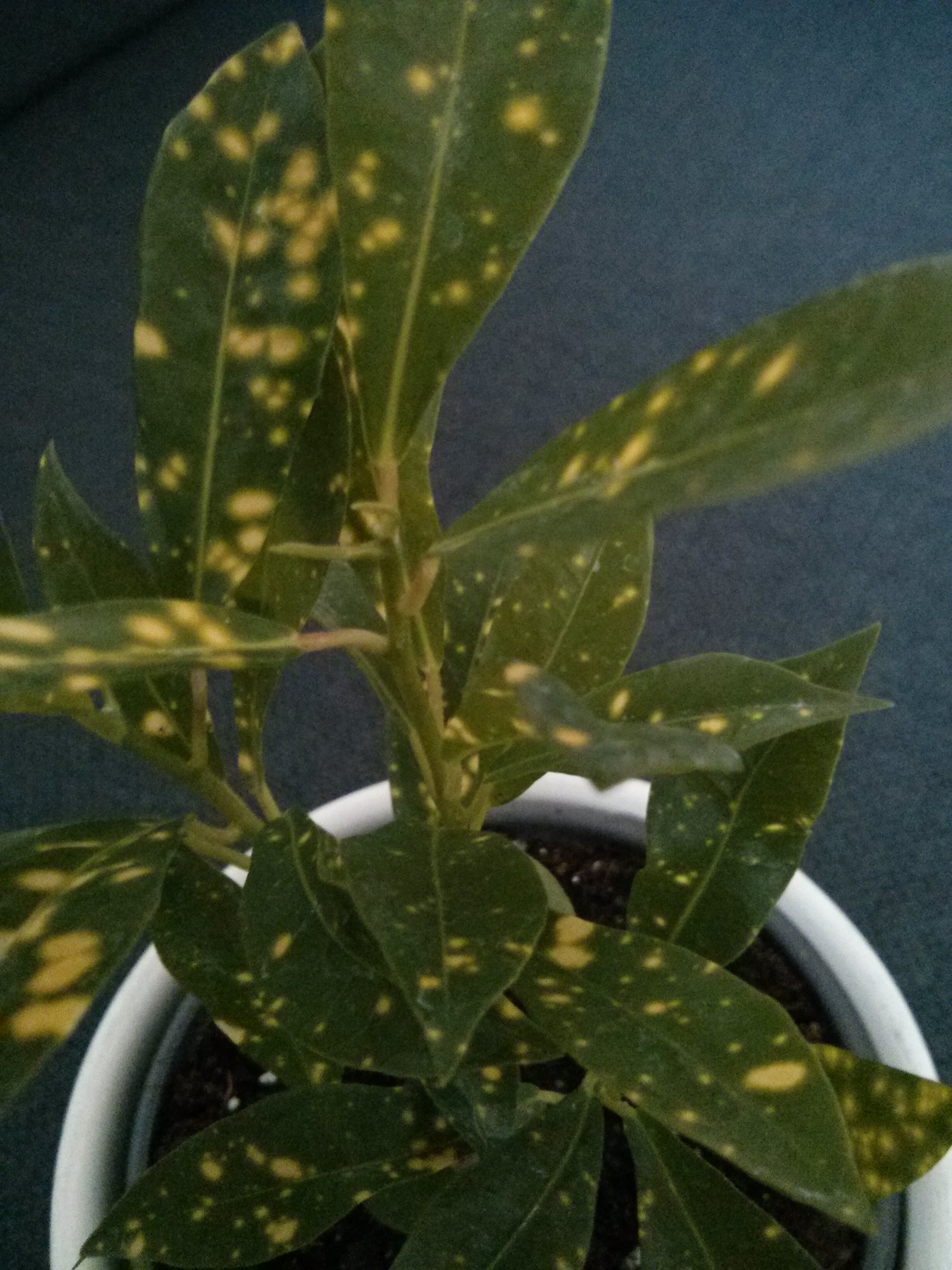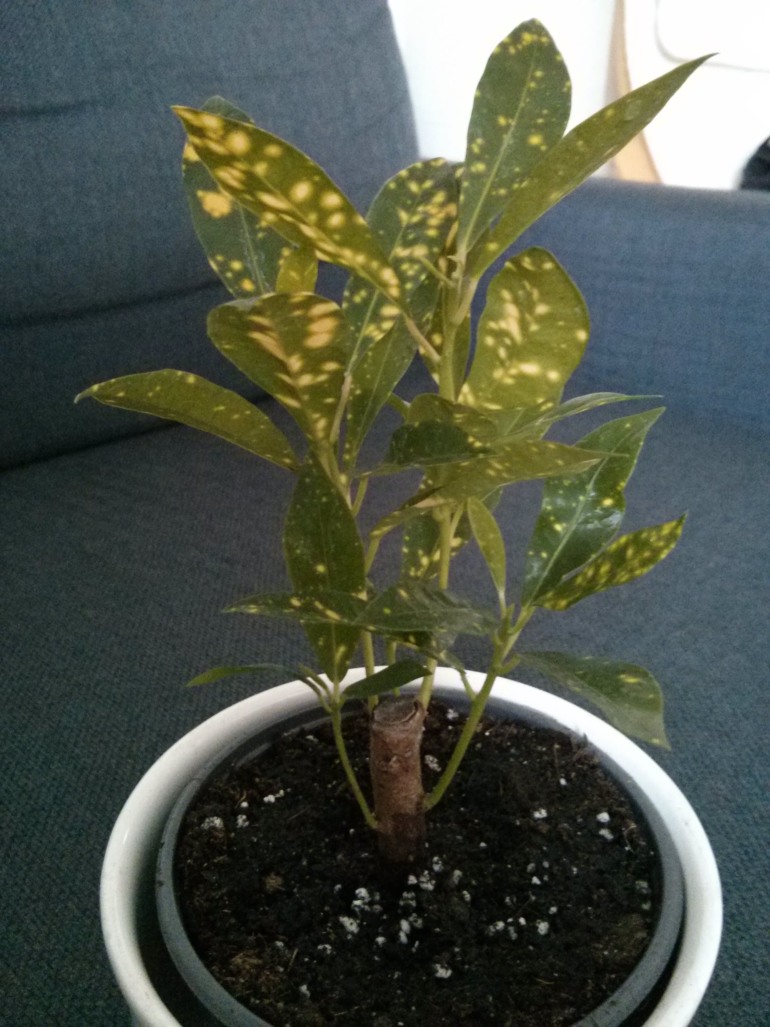 bei meinem heutigen Baumarktausflug kam ich wieder nicht heil an den Minipflänzchen vorbei. Diese hübsche Exemplar ist circa 15cm groß, die Blätter sind höchstens 5cm lang und haben alle diese hübschen gelben Punkte, die auch je nach Größe und Anzahl die Struktur des Blatts ein wenig uneben wirken lassen.