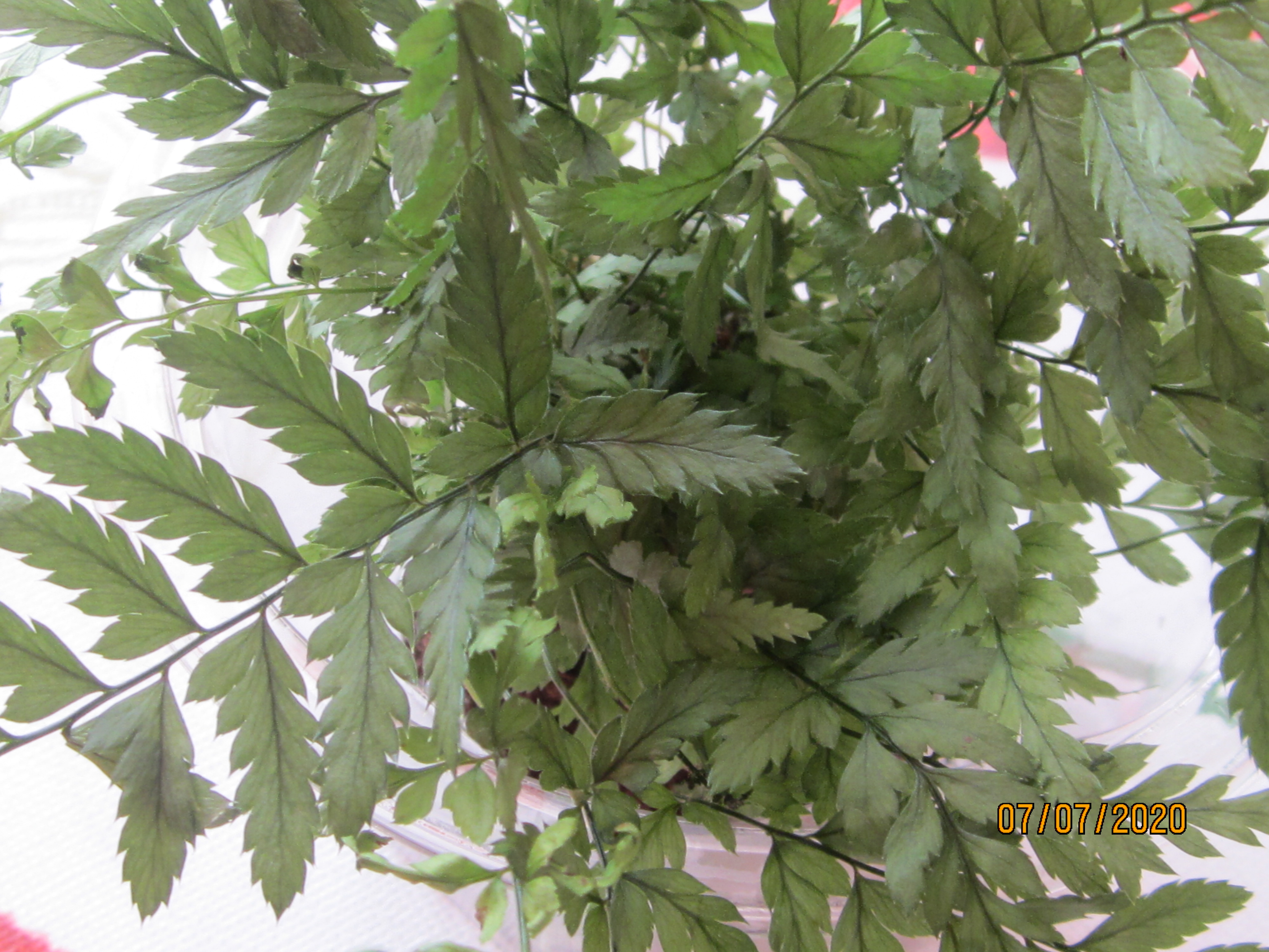 Dieser Farn stammt aus einem Blumengesteck: Weiss vielleicht jemand von Euch, um welche Sorte es sich dabei handelt?