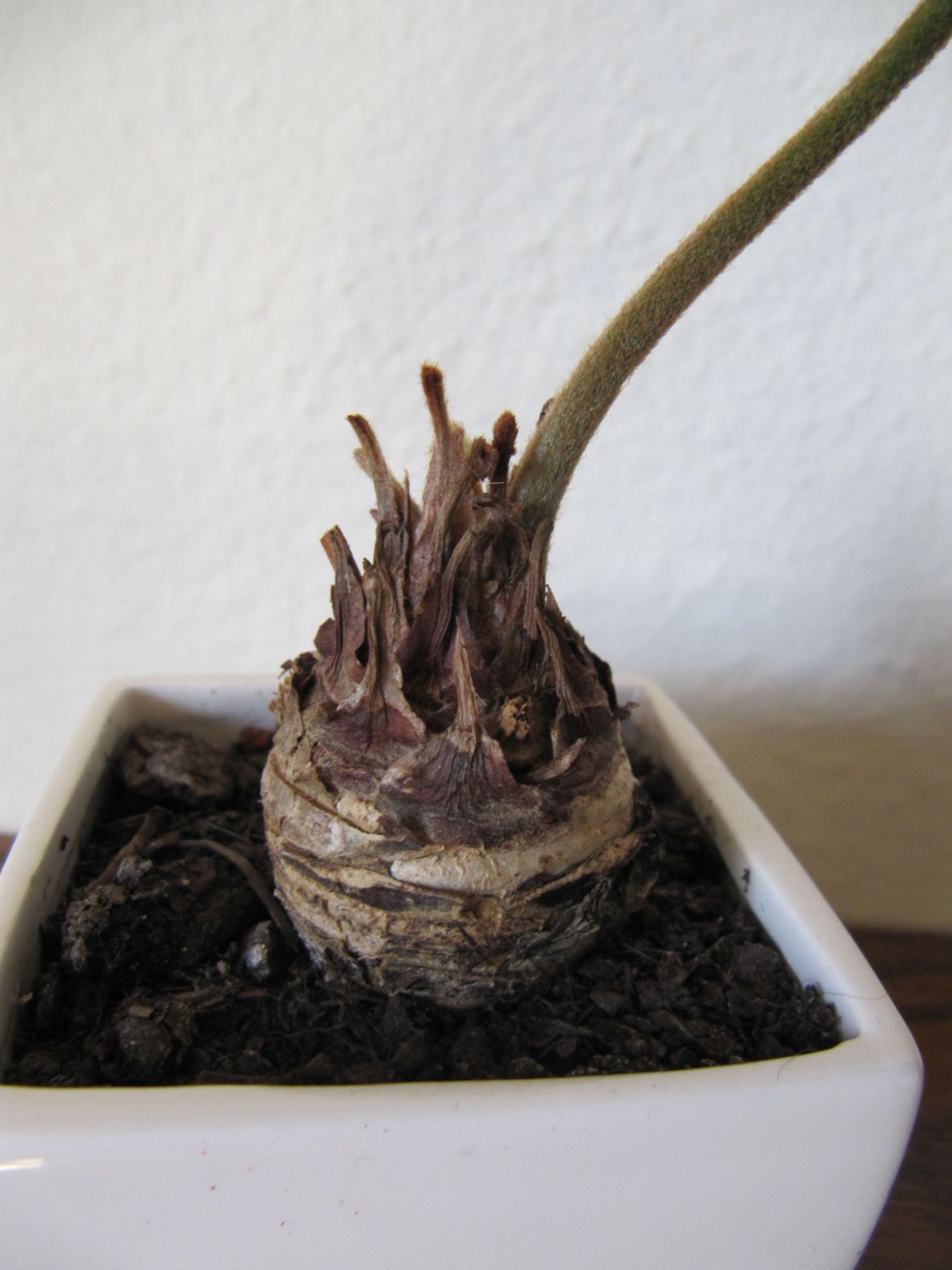 Kann mir jemand helfen? Hab vor ein paar Jahren eine Pflanze von meinem Vater geschenkt bekommen. Er hat sie von Aldi/Hofer mitgenommen und ich hab keine Ahnung was es ist... dachte schon an eine Art Palme, da die Knolle über der Erde ist und so..