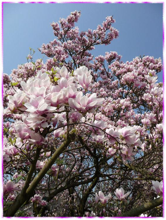 Heute ist eine erste Magnolienblüte aufgeploppt