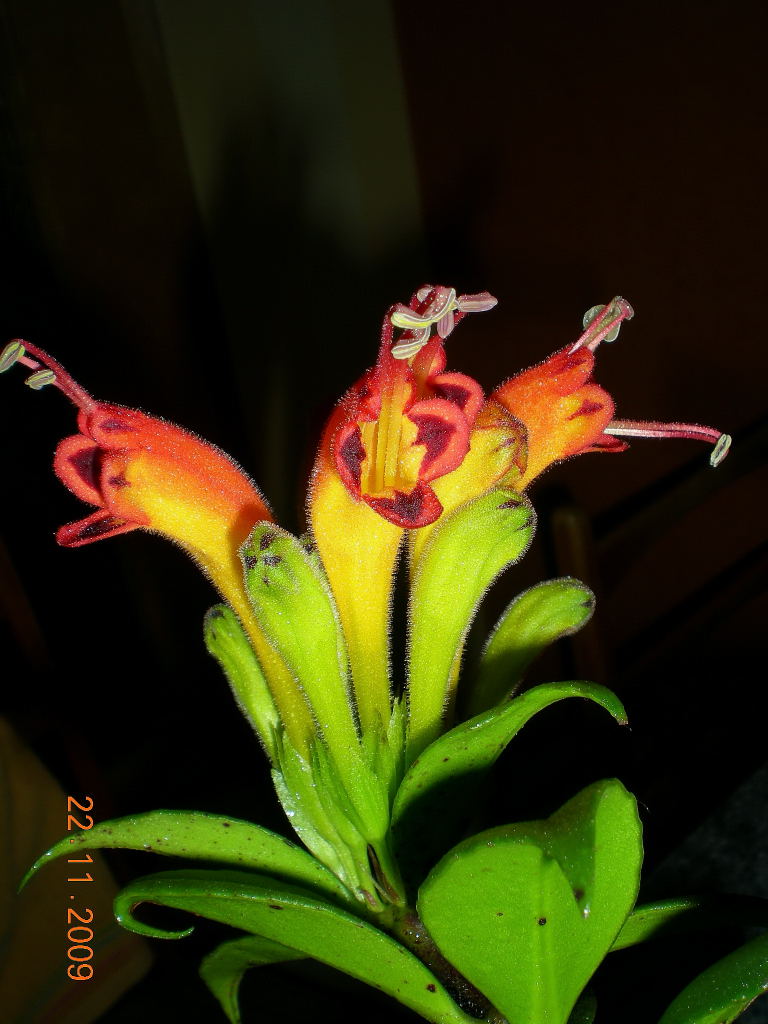 Bei der Witterung kann man ja auch kirre werden. Das wird den Blümchen nicht anders gehen. Bei mir blüht eine Aeschynanthus ( warscheinl. speciosus). Ich bin fasziniert von den Farben. Den Senker dazu erhielt ich als "Wachsblume" Aber hier wird ja geholfen--nun kenn ich den Namen.