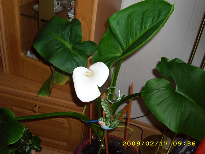 Seit 2Wochen blüht im Wohnzimmer unsere Zimmerkalla