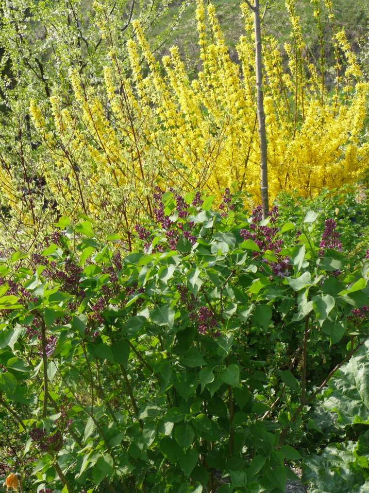 Phlox, Judasbäumchen (fast), Ranunkelbusch und seit heute der erste Flieder.