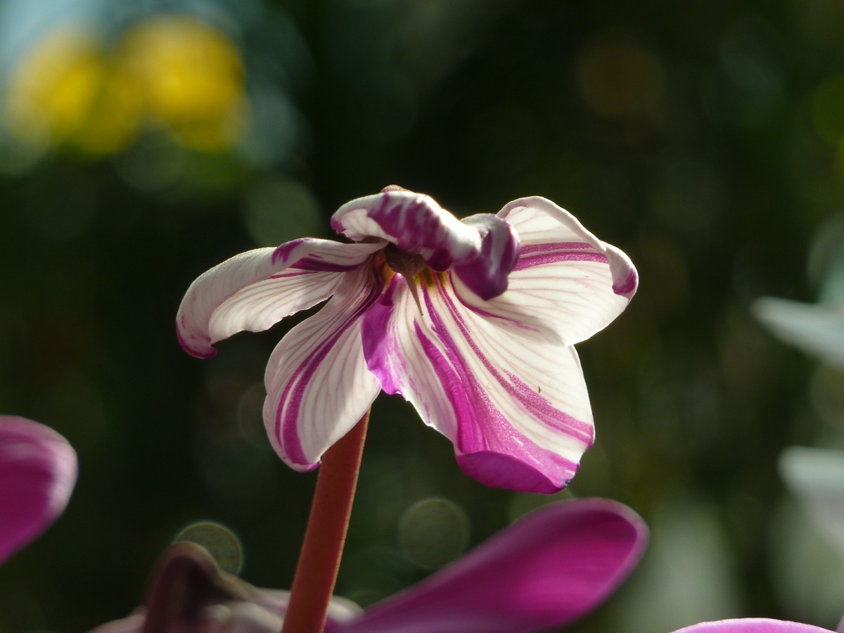 Bei mir blüht ein Cyclamen En Vouge gerade sehr schön. Das Foto zeigt aber nur eine verblühte Blüte, deren Kelchblätter blütenblattartig großgezüchtet worden sind Finde ich irgendwie cool, weil sie so zwei verschiedene Arten von "Blüten" hat.