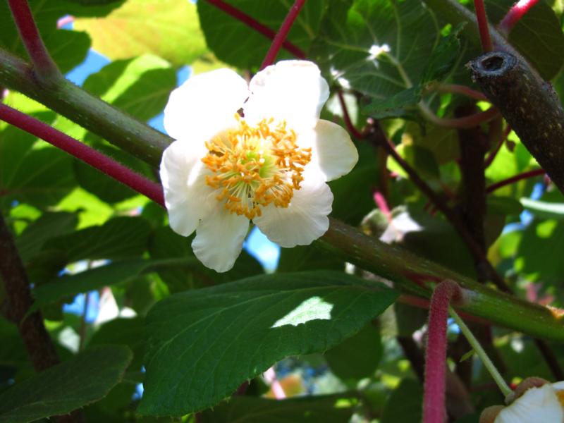 Zur Zeit blüht der Kiwi - Strauch, nur werden die Früchte im Erzgebirgsvorland nicht groß.