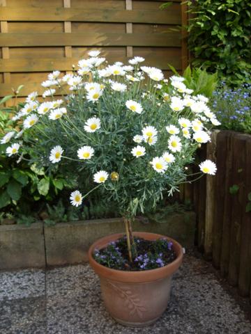 Hier ist noch ein Bild von der überwinterten letztes Jahr. So hat sie fast den ganzen Sommer ausgeschaut und es sind noch viel mehr Blüten nachgekommen