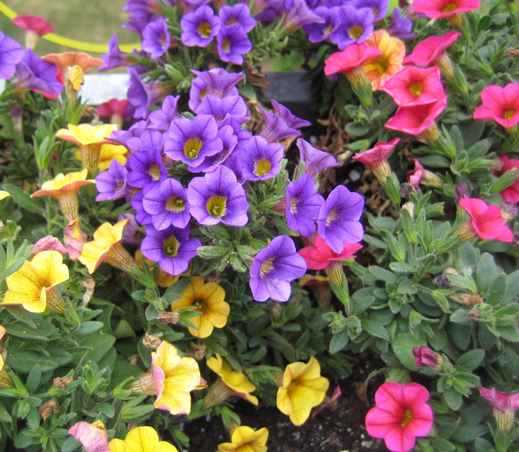 "das sind eigentlich keine Petunien (Petunia) sondern Zauberglöckchen (Calibrachoa)"