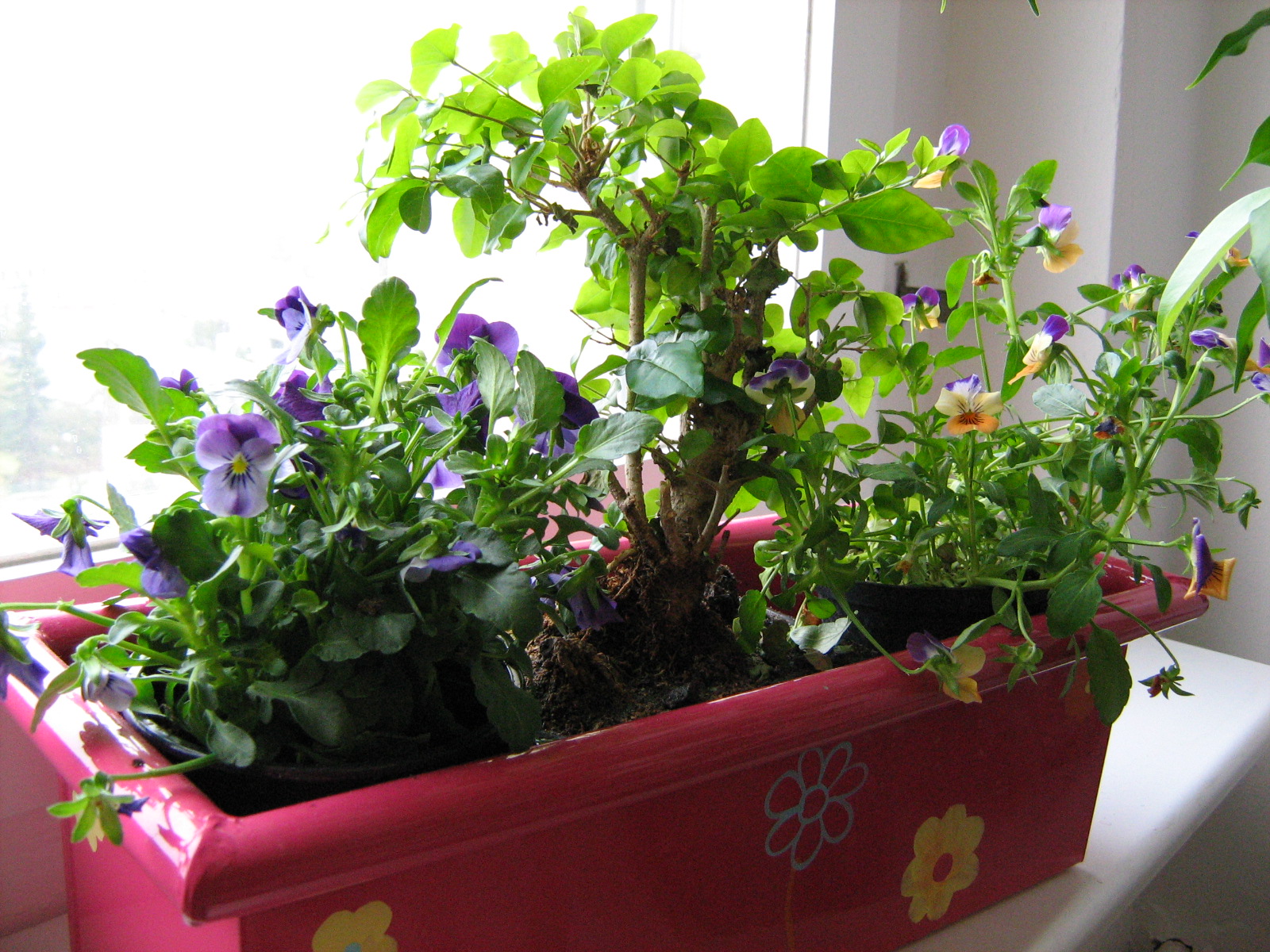 So etwa 7-8 cm. Die Blüten sind eher vereinzelt, nicht so dicht, wie die mit den kleinen Blüten. Die Pflanze formt aber einen grossen Teppich, wobei die pinkfarbene Sorte wesentlich grössere Teppiche macht.