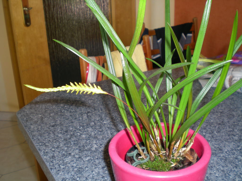Heute mal ein Kleinod: Dendrochillum wenzelli lt Etikett. Die müßte aber rosa blühen. Meine blüht gelb. Weiß also nicht, welches Dendrochillum-trotzdem niedlich.