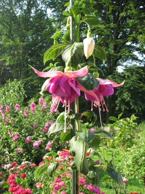 Meine Fuchsie mit der übergroßen Blüte ist aufgeblüht. Ich habe sie aus einem Minnisteckling von 5 cm Länge gezogen.
