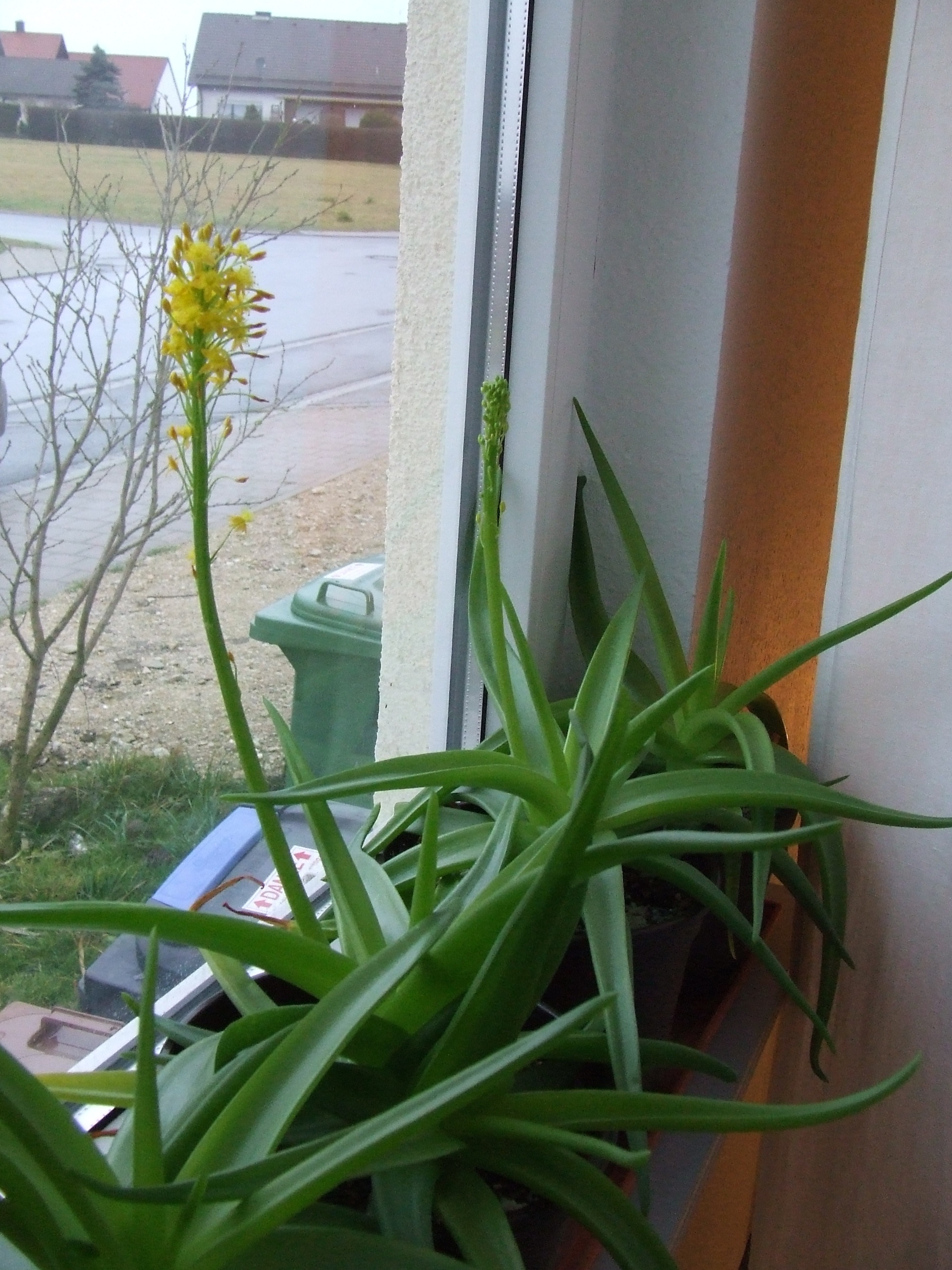 alle anderen bulbinchen müssen derzeit im obergeschoss "ausharren" zwecks platzmangel sie stehen zum einen teil direkt unter dem dachflächenfenster (weste) bzw. an der gegenüberliegenden wandseite - entwicklung ist wesentlich schlechter/schwächer und von blütenansätzen keine spur
