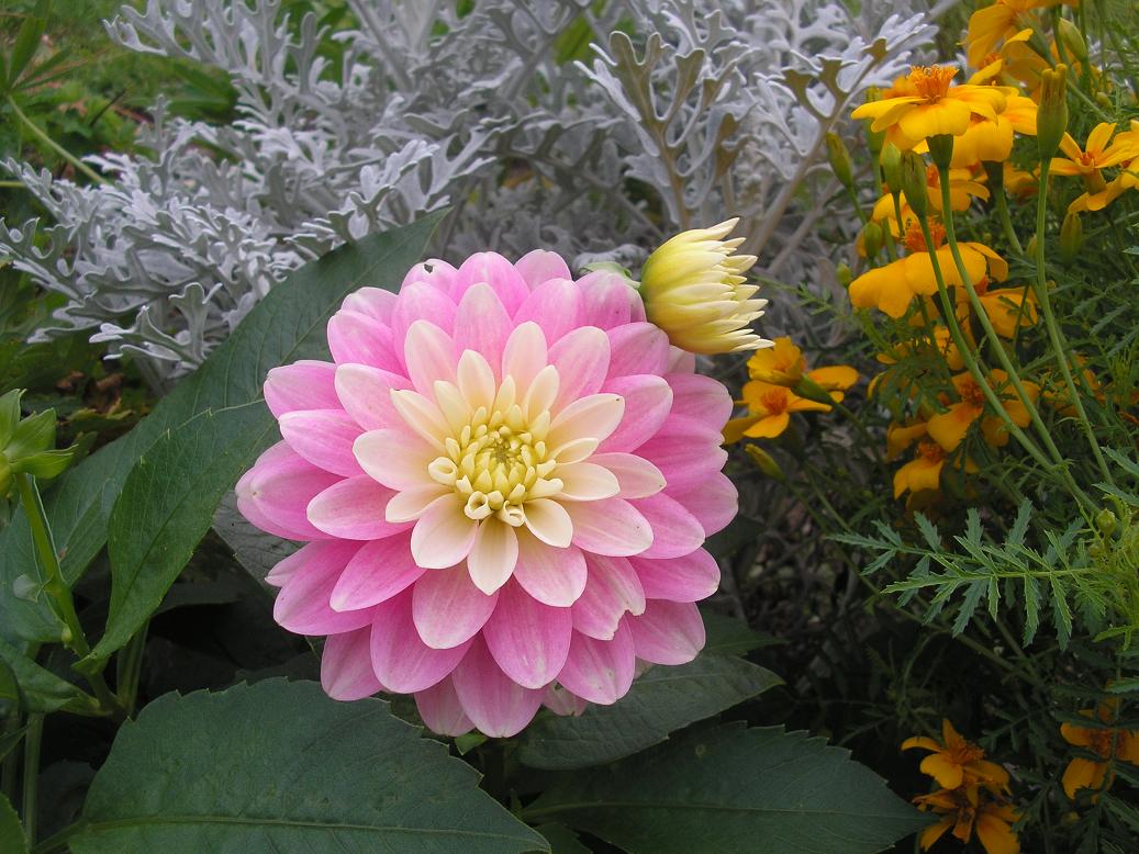 zusammen mit Dahlien und Tagetes tenuifolia....