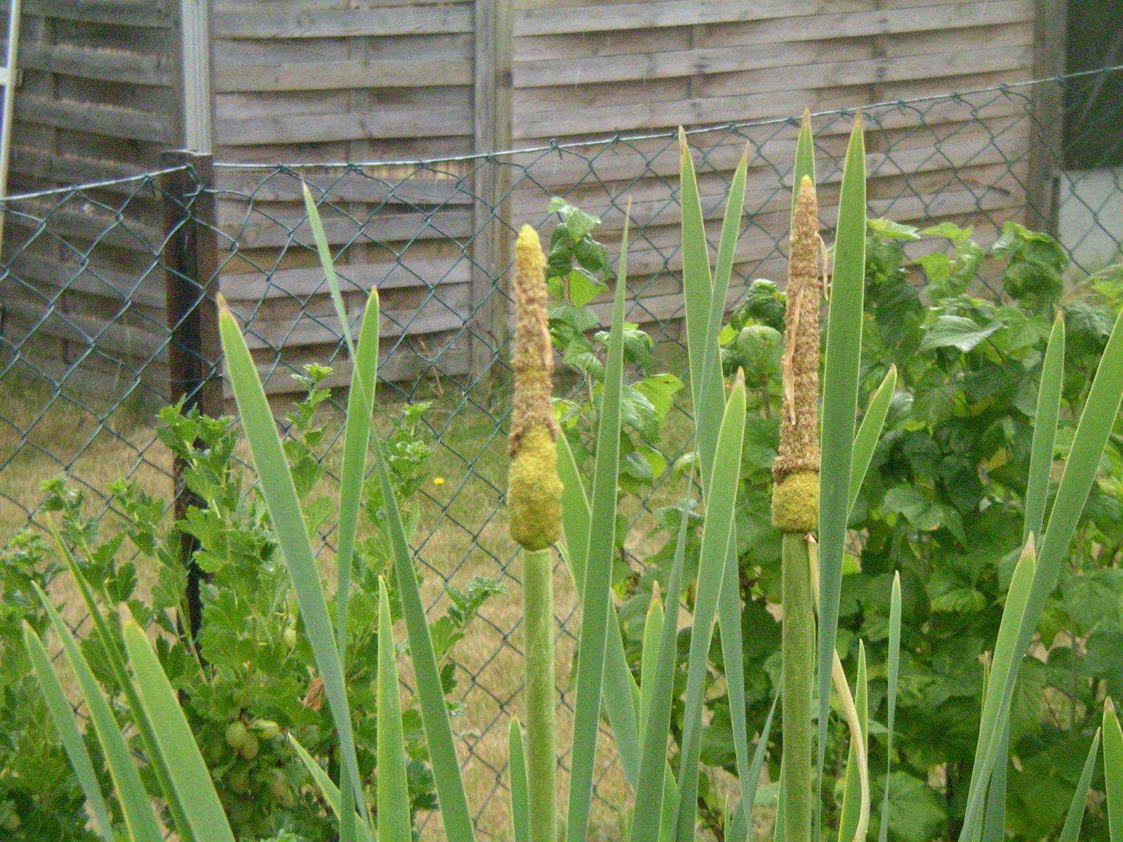 Die obere Pflanze ist ein Pontederia cordata, auf Deutsch Hechtkraut, normalerweise beginnt die Blüte auch erst Ende Juni.