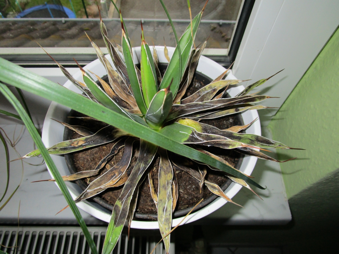 ich hab zwei Königin Victoria Agaven, vom Aussaatwettbewerb damals. Die eine ist das blühende Leben, die andere kümmert immer mehr vor sich hin und scheint kurz vor dem Ende zu sein. Sie sind beide gleich alt, hatten immer die gleichen Bedingungen (gleiches Fenster, gleiche Töpfe, gleiche Erde, gleiche Gießmenge). Was kann es also sein, was der einen so zu schaffen macht? Könnt ihr mir helfen?