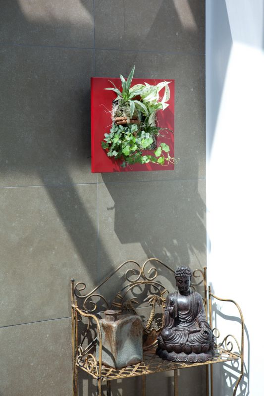 Aber nicht nur Männer, auch Zimmerpflanzen werden jetzt in einem roten Bilderrahmen richtig gut in Szene gesetzt: Seit 2006 gibt es die von französischen Gartenbau-Professoren entwickelte Wallflower-Technik. Damit lassen sich lebende Pflanzen einfach wie ein Bild mit Rahmen an der Wand platzieren. Das patentierte System ist seit kurzem auch bei uns im Handel erhältlich. Die Mini-Gärten sind pflegeleicht und werden in drei Standard-Größen, komplett montiert und bepflanzt angeboten. Im Sortiment und äußerst beliebt sind natürlich auch bei den Pflanzenbildern die roten Rahmen. Drei verschiedene Ausführungen gibt es: Glattmetall in dunkel- oder orange-rot sowie rotes, gehämmertes Metall. Dass Pflanzen gerade in diesen Rahmen besonders gut aussehen, liegt daran, dass Grün die Komplementärfarbe zu Rot ist. In Johannes Ittens Farbkreis liegen sich die beiden Farbtöne diametral gegenüber, was bedeutet, dass sie die größtmögliche Verschiedenheit besitzen. Nebeneinander platziert, steigern sich Komplementärfarben in ihrer Leuchtkraft und Farbwirkung. Efeu, Anthurie, Farn oder Drachenbaum: Das Grün ihrer Blätter kommt im roten Wallflower-Rahmen auf jeden Fall richtig zur Geltung.