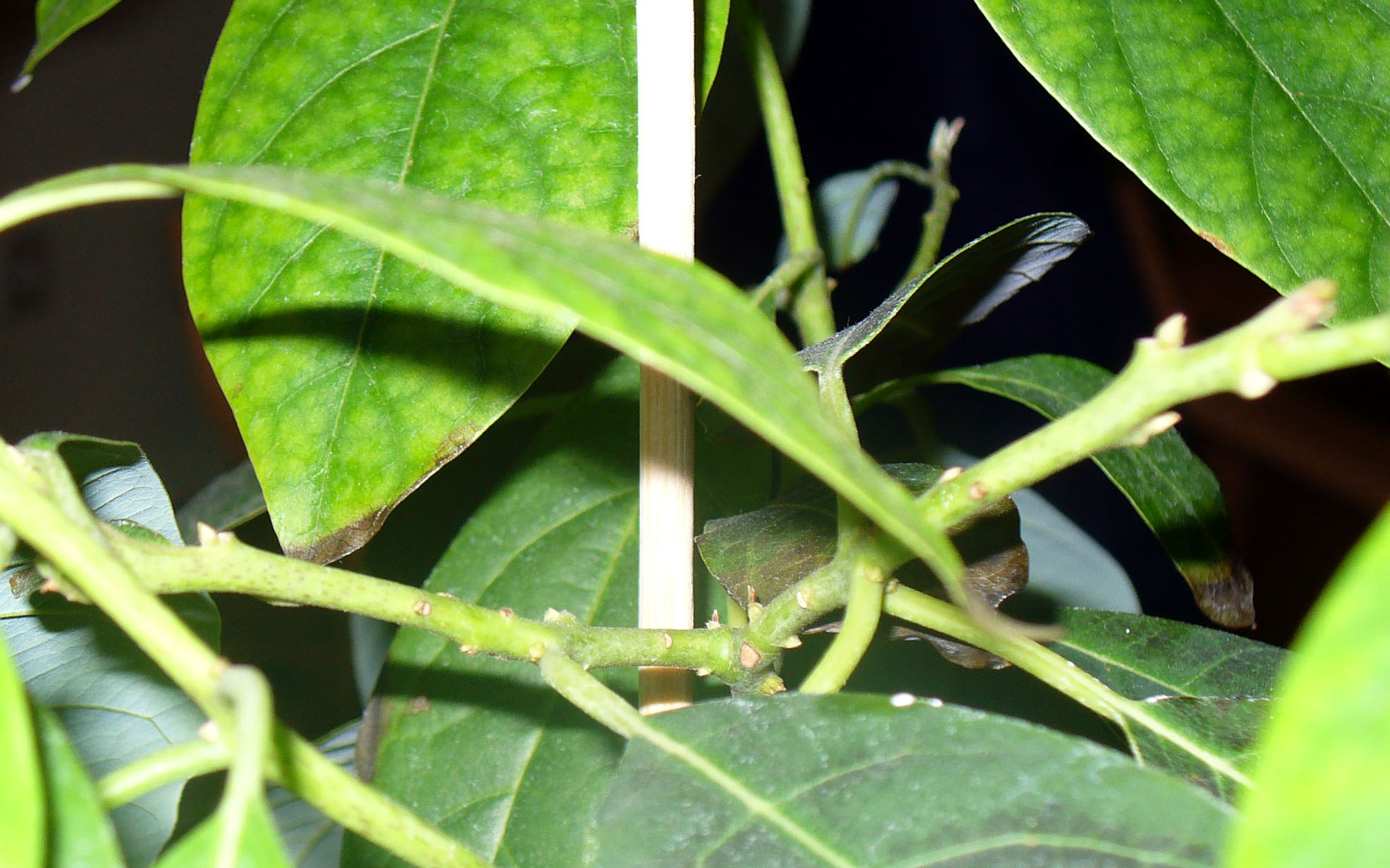 Von den "Knospen" habe ich mal Fotos gemacht - die sind wie gesagt mittlerweile an allen Ästen zu finden...Wenn ich das früher richtig beobachtet habe, sind daraus die neuen Triebe entstanden, nachdem ich die Pflanze "beschnitten" hatte...