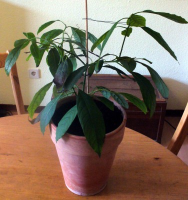 Vor etwa 4 Monaten bin ich umgezogen - leider ist die neue Wohnung deutlich dunkler und die Avocado muss nun mit einem Nord-Fenster zufrieden sein. Seither hat sie immer mal wieder einzelne Blätter verloren (was ich auf den neuen Standort zurückgeführt habe), aber in den letzten zwei Wochen hat sie wirklich viele abgeworfen, so dass sie langsam aber sicher richtig "kahl" wird...Interessanterweise fallen nicht zwangsläufig die Blätter zuerst ab, die so hässlich braun werden, sondern häufig sind es die grünen Blätter, die eigentlich noch gesund aussehen...