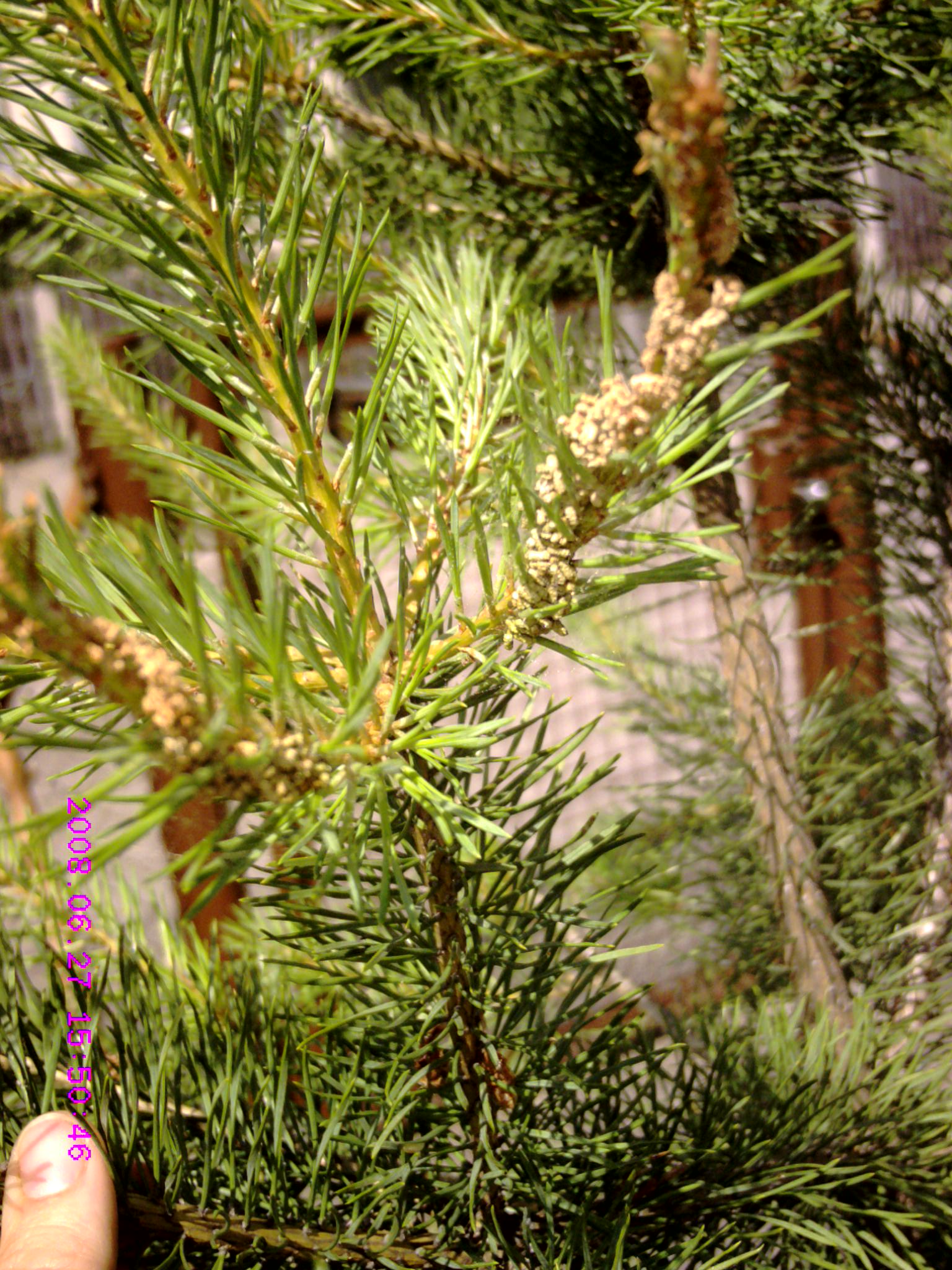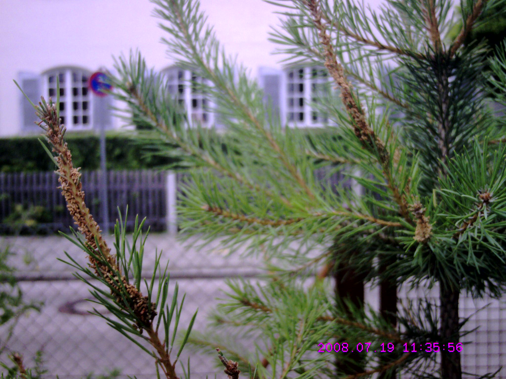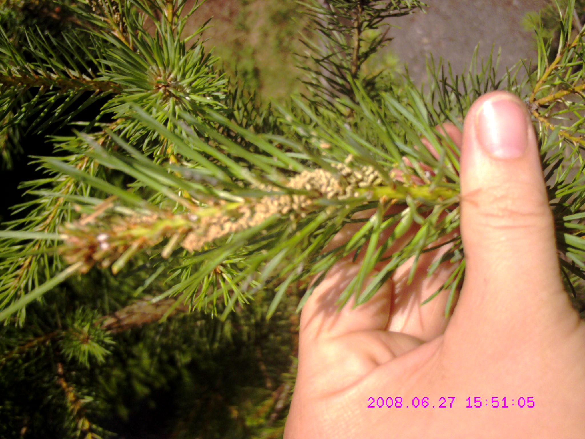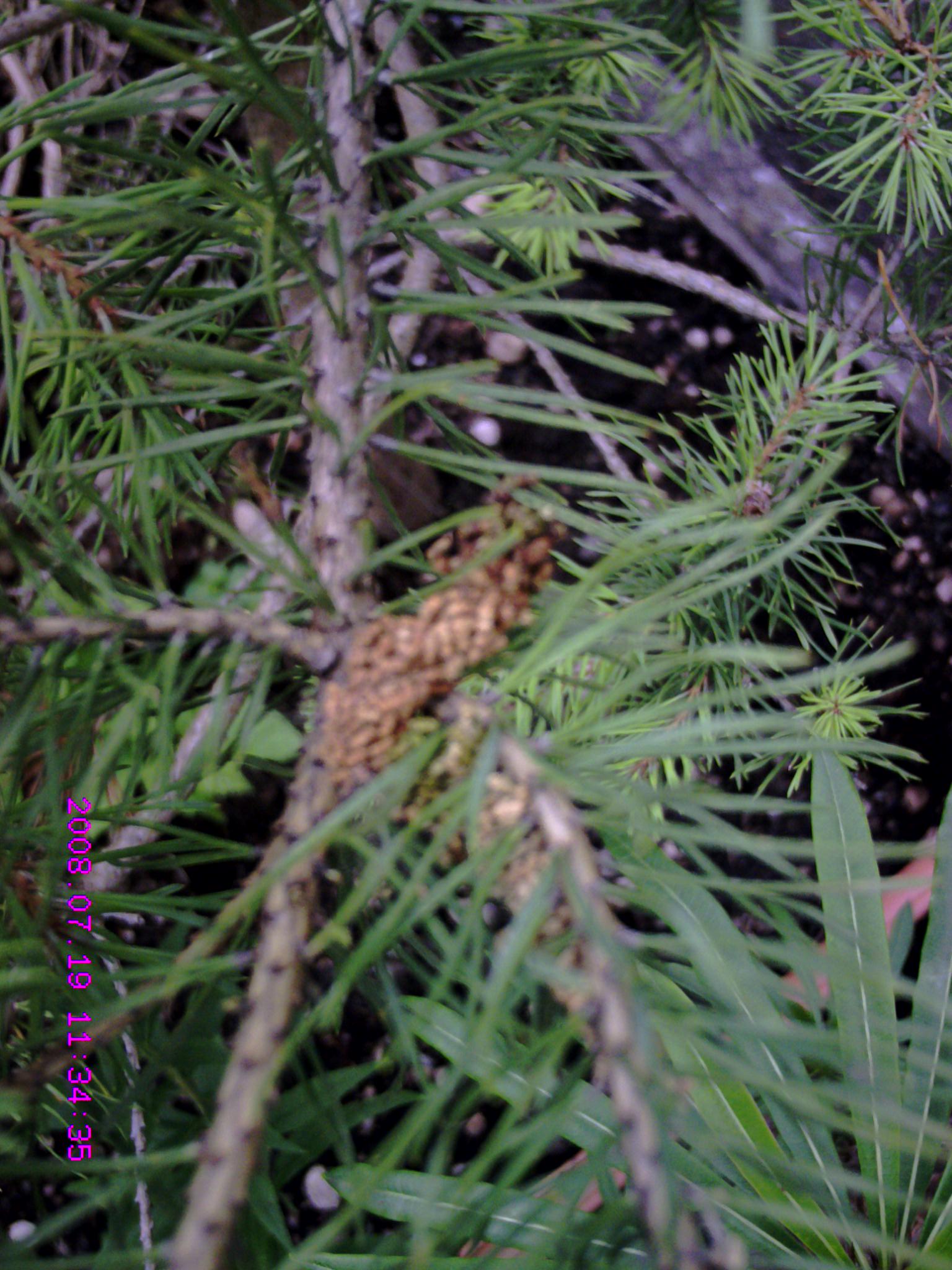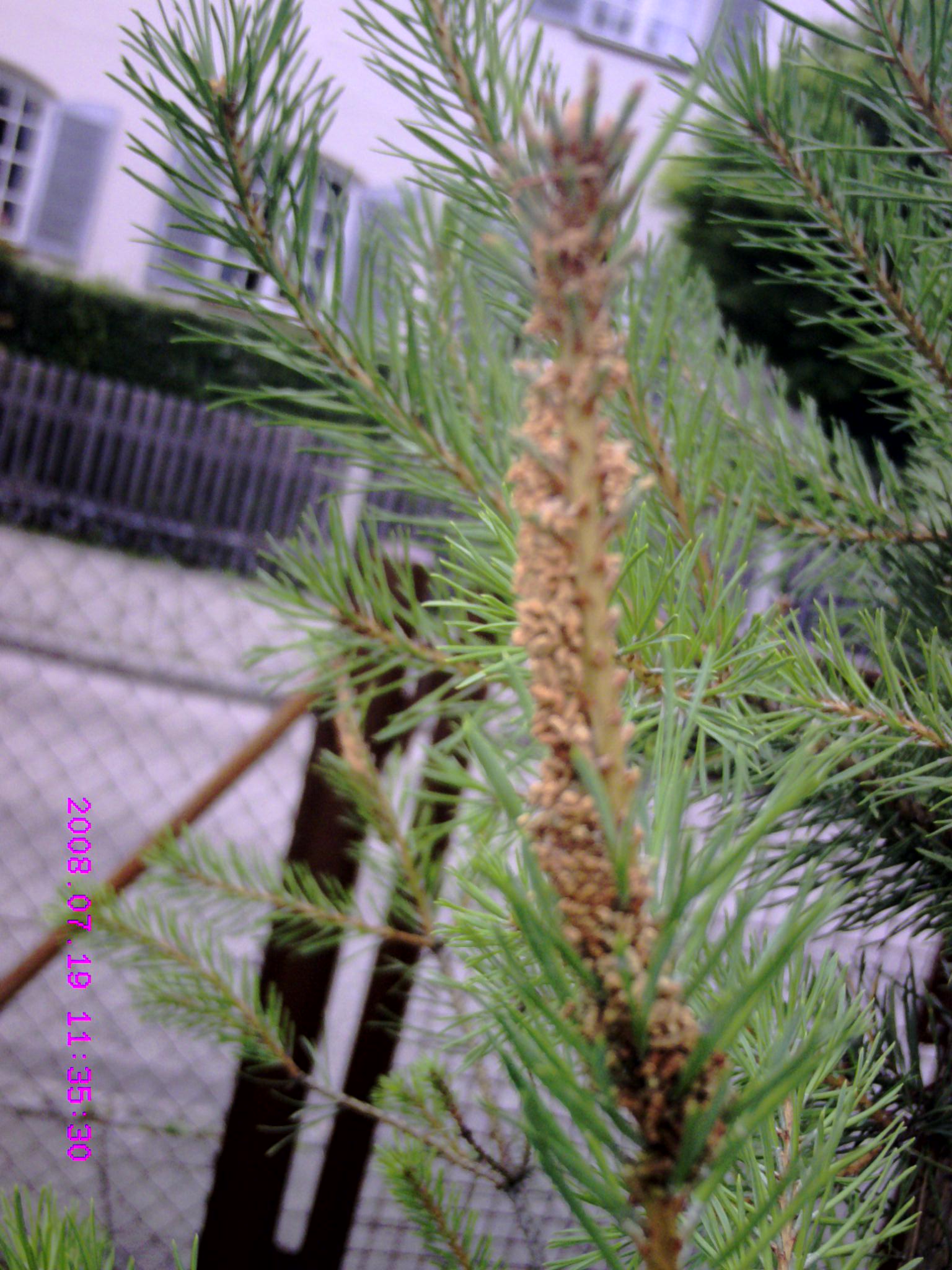 Hab schon unter Kiefernspanner im Inet gesucht,aber der ist es nicht=Gelege paßt nicht.In jedem Kokon sitzt eine Raupe.Und dieser Kokon besteht aus lauter kleinen Würstelchen(siehe Fotos) die zusammen gesponnen worden sind.
