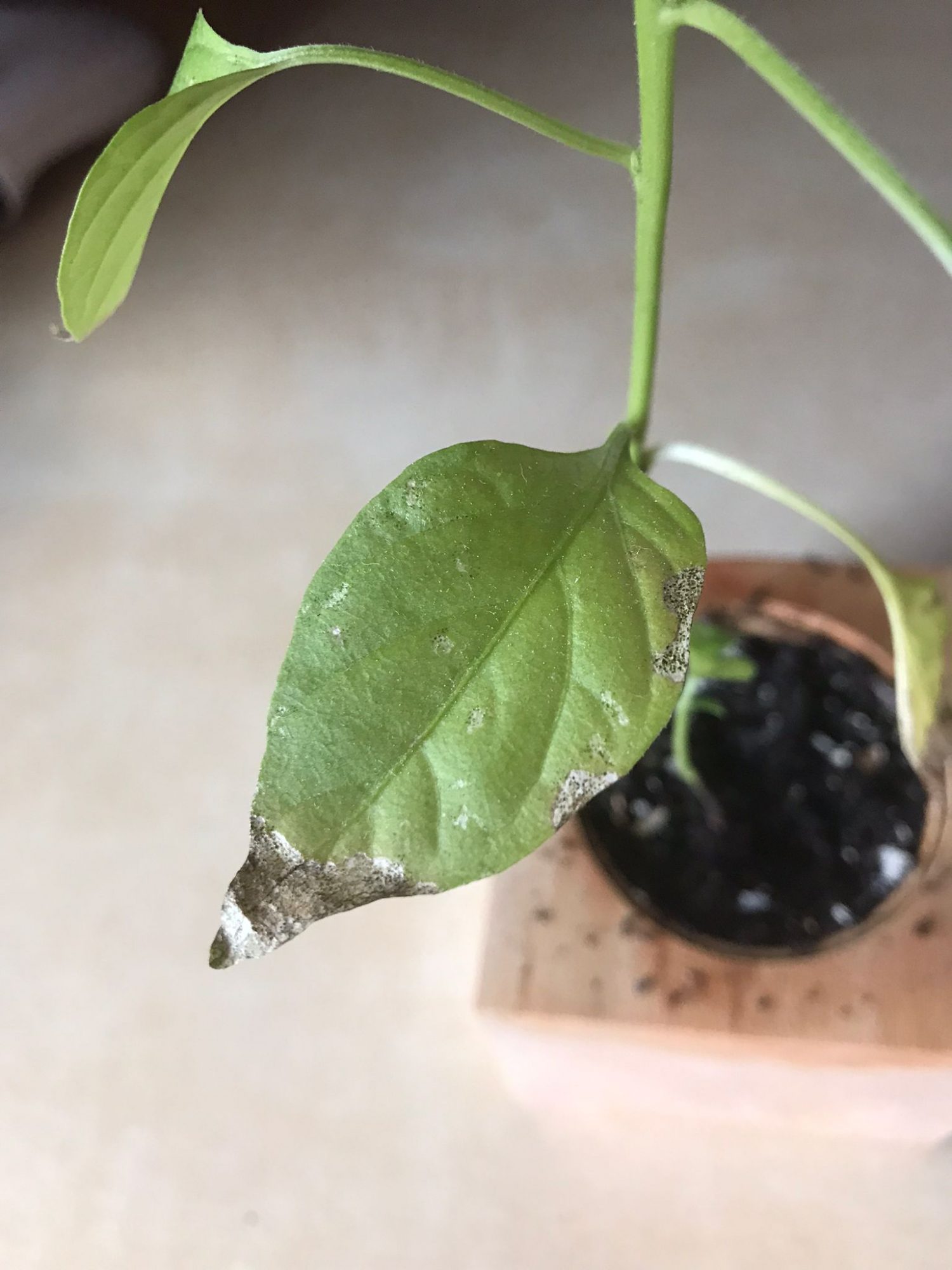 Jedoch seit ein paar Wochen bekommt sie weiße kristallfarbige Ränder an der Blattspitze sowie flecken in der Innenseite vom Blatt.