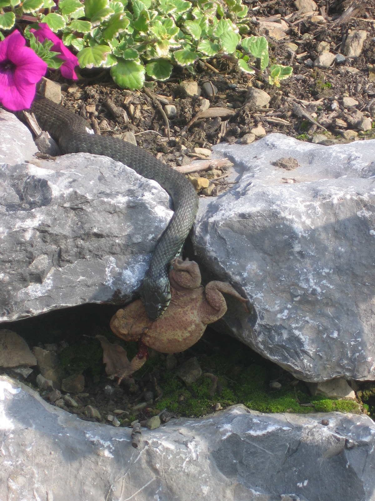 Die Schlange hatte eine super riesige Kröte gefangen und diese vor unseren Augen verspeist. Das war echt unglaublich und auch ziemlich ekelig, aber eben der Lauf der Natur.