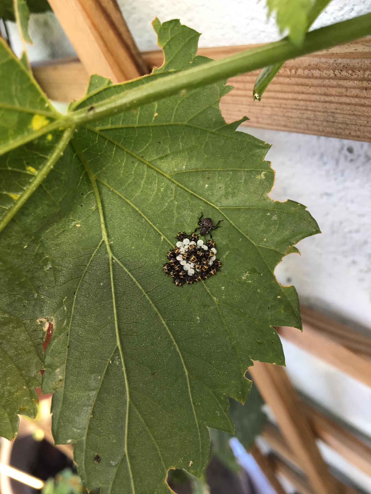 heute hab ich ein Nest an einem Blatt entdeckt mit einem anderen Käfer mit ganz vielen Jungen. Weiss jemand was dass für ein Käfer ist und was der kann