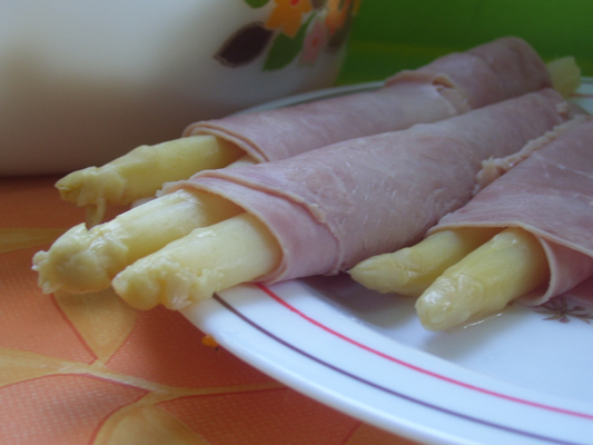 Rindfleischküchle mit warmen Spargel-Bärlauch-Salat, dazu Wedges und Avocadodip!