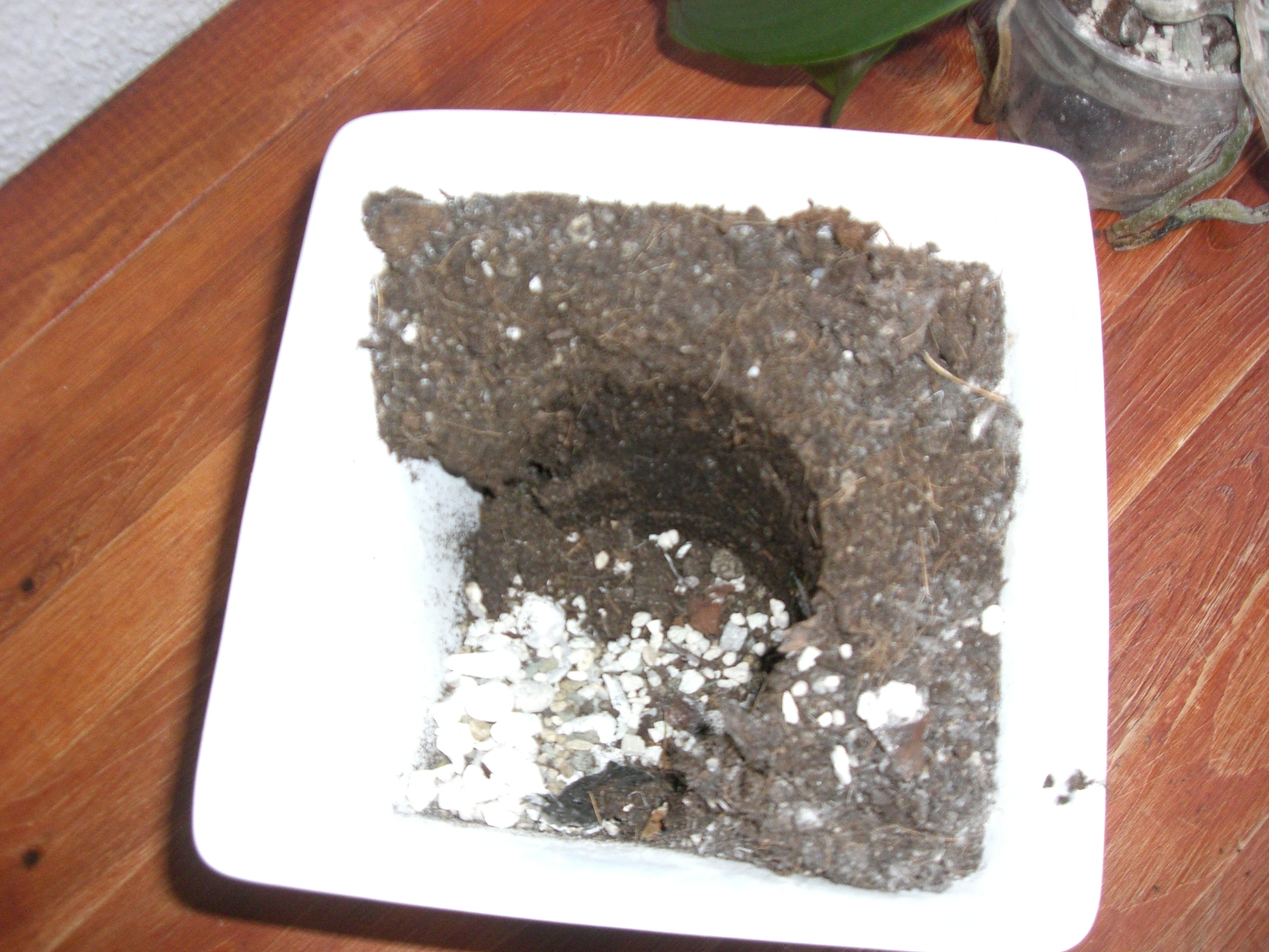 Die Leute die die Pflanze dort eingepflanzt haben, haben die kompl. Pflanze mitsamt Plastiktopf nochmals in stink normale Blumenerde gepflanzt. Teilweise hat man einfach ein paar Blätter mit den Steinen abgedeckt und diese haben nun zu faulen angefangen!!! Dazu kam noch das sich das Gießwasser in der Blumenerde angesammelt hat.