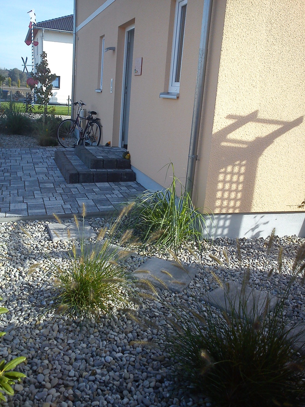 Die Schattenseite auf dem 2. Bild ... ist das ein Durchgang zwischen zwei Häusern zum Garten? Und wird das mehr als ein Kiesweg??
