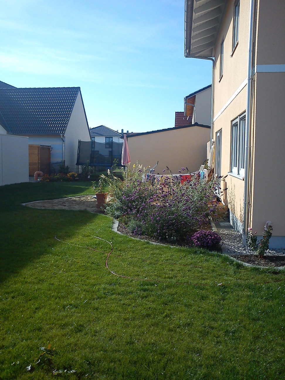 Wenn ich deine Zeichnung richtig interpretiere Flip, habt ihr ja vor, noch an der Südgrenze vom Grundstück ein Blumenbeet zur Begrünung der Nachbargaragen zu machen. Bei meiner Überlegung hätte ich eher diese Ecke genommen als unmittelbar den Platz an der Terrasse. War vielleicht etwas blöde ausgedrückt. Und dort wäre eben mit einer von dir begrünten Pergola diese Ecke+ Mauerwerk ebenfalls dekorativ versteckt.