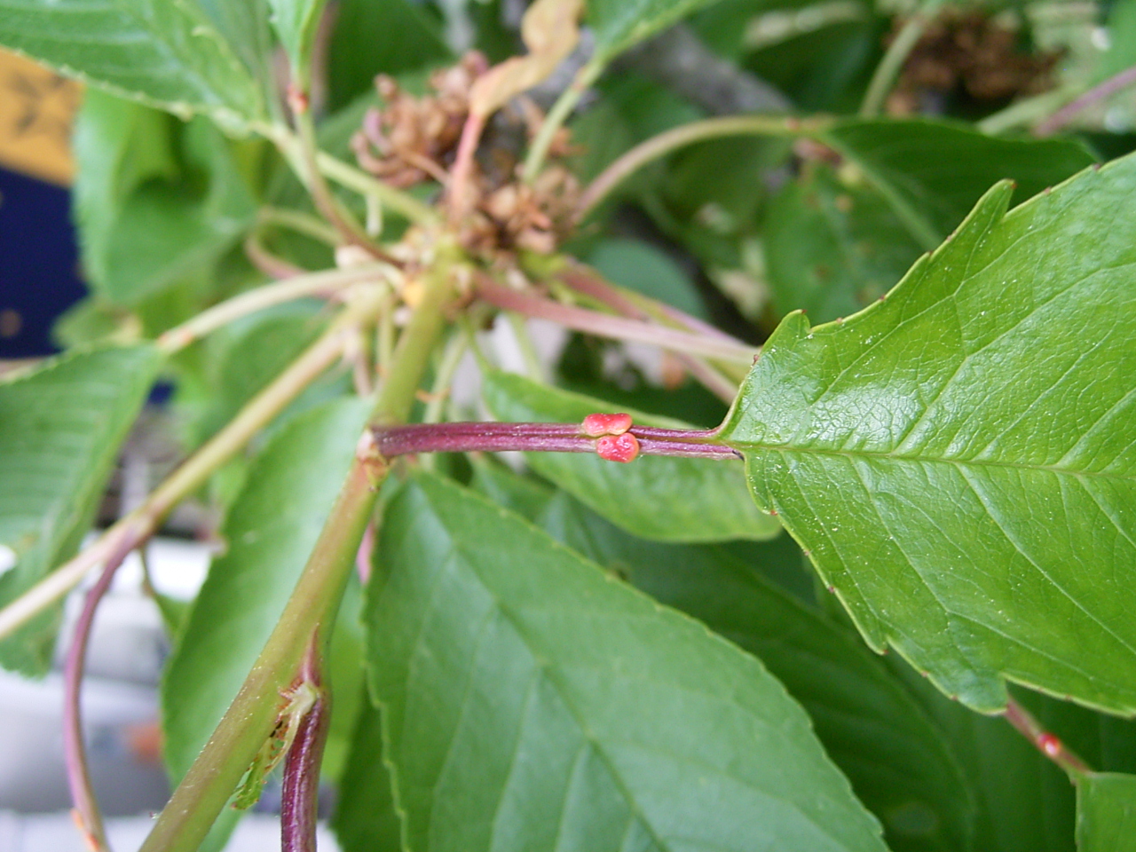 die nektardrüsen sind bei den verschiedenen kirschen unterschiedlich ausgeprägt. die läuse haben sich eher unabhängig davon auf dem baum angesiedelt.