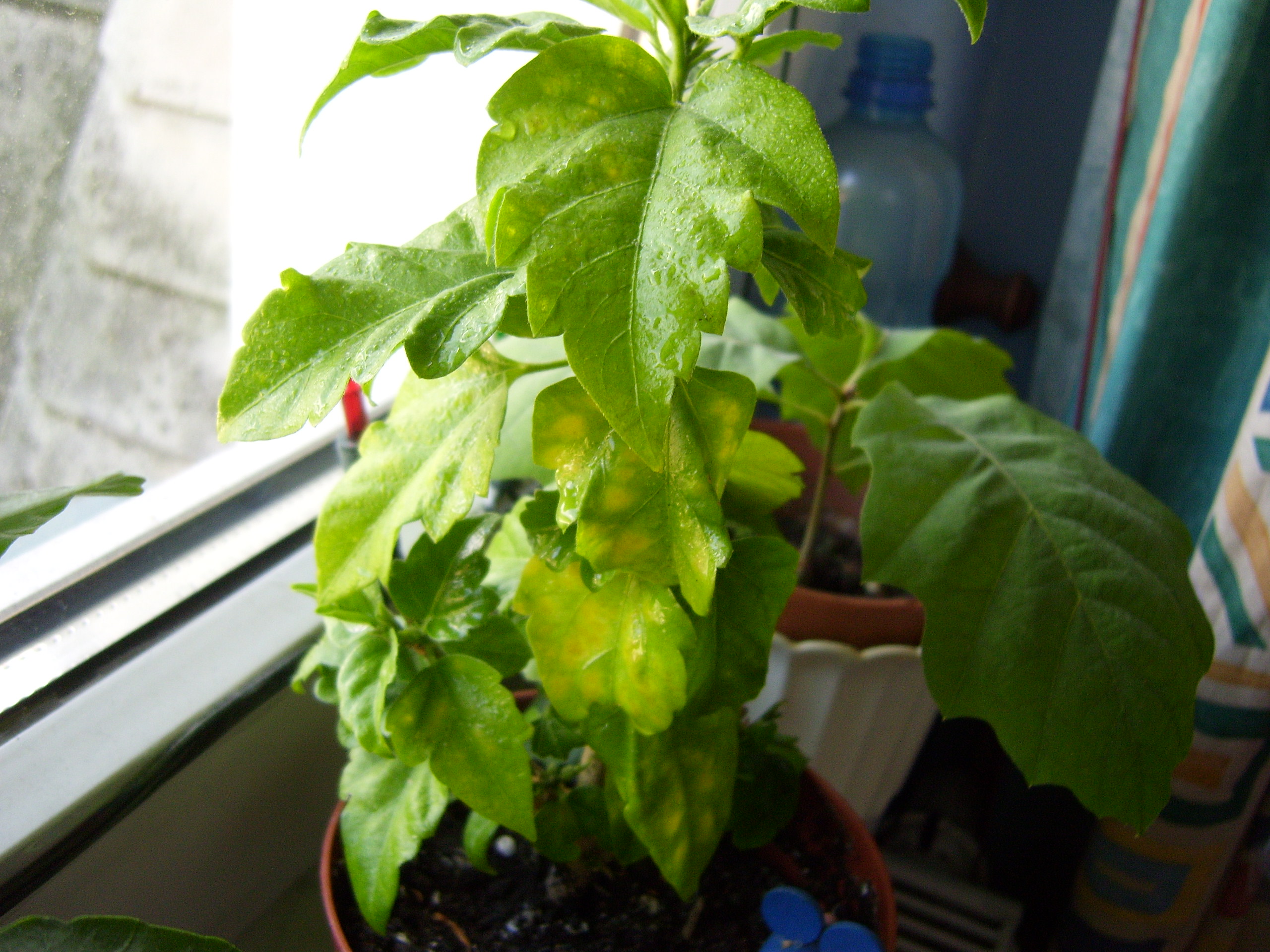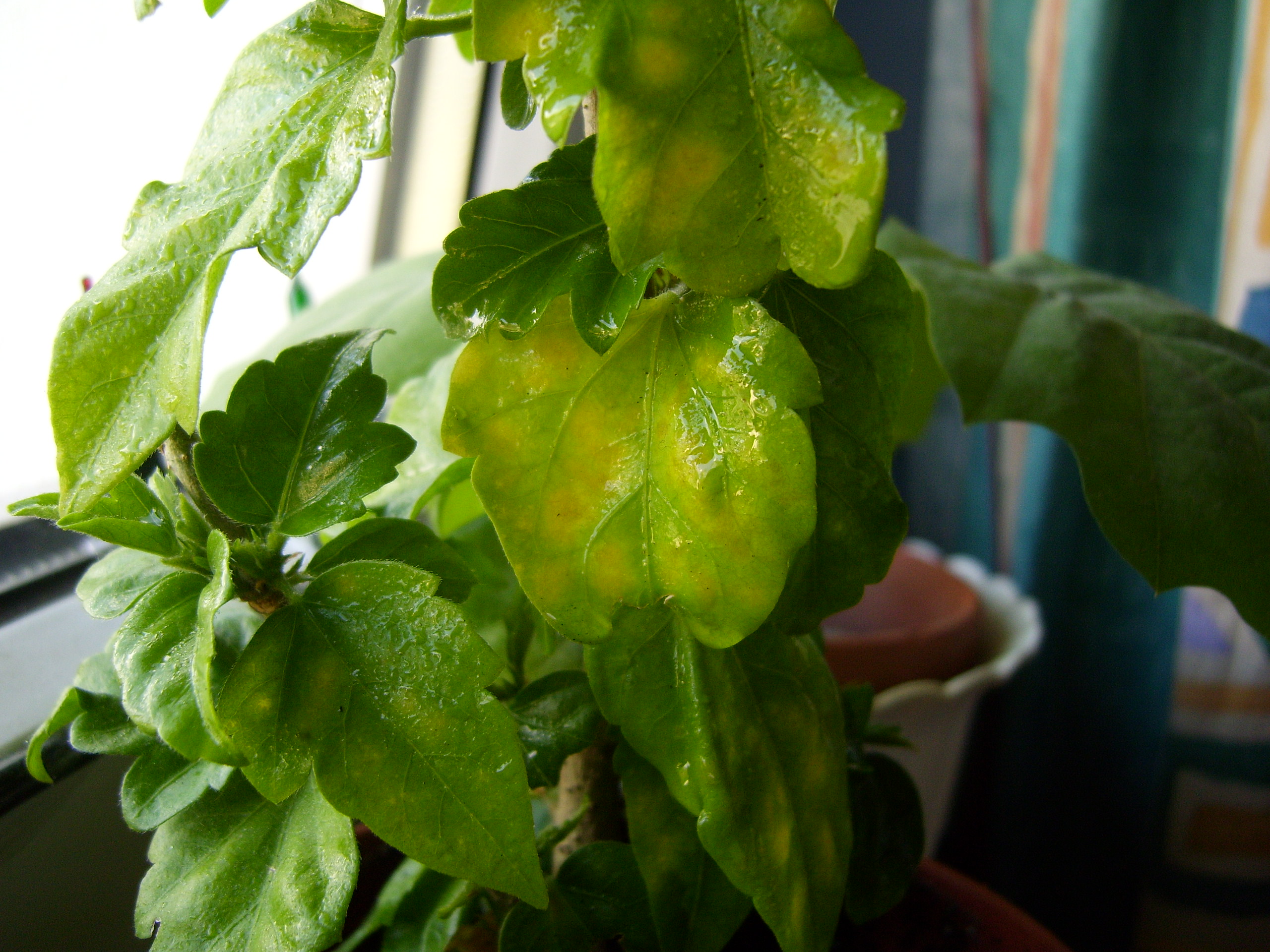 Mein Hibiskus bekommt jetzt überall gelbe Blätter, bzw solche gelben Flecken auf den Blättern. Was könnte das sein?