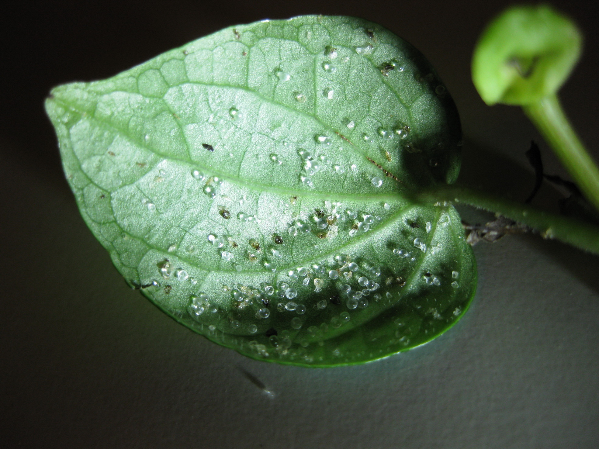 Mein Pfeffer hat auf den Blattunterseiten jede Menge kleine durchsichtige bis schwarze Kügelchen.