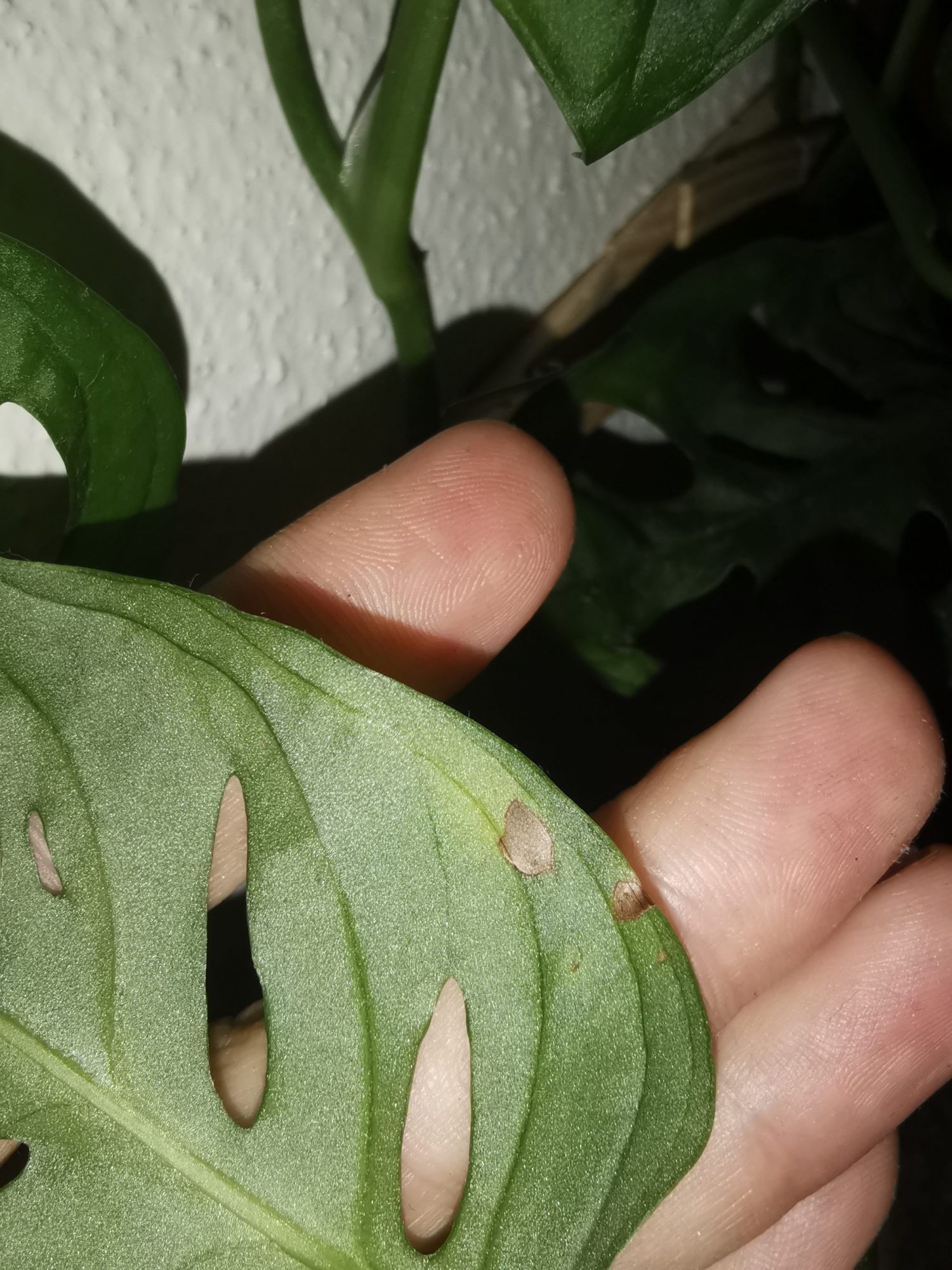 Meine Monstera bekomnt gelbe Flecken und kleine braune Krater, die sich scharf abgrenzen. Was könnte der Grund sein? Muss ich sie isolieren?