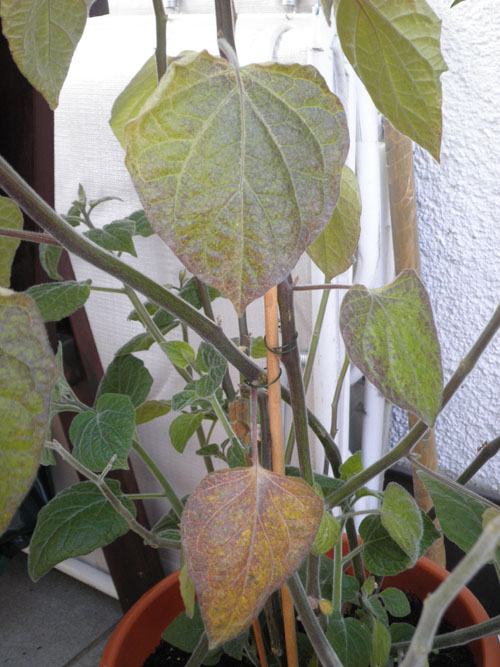 Hallo, ich habe seit zwei Wochen eine wunderschöne Physalis. Seit letzter Woche werden jedoch die Blätter gelb/braun und sterben ab.