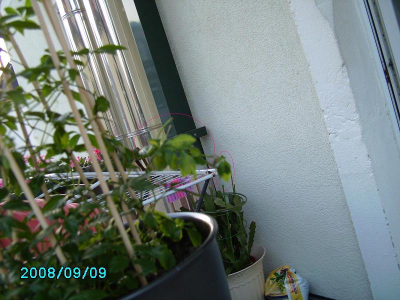 er bekommt gelbe Blätter, die eingehen. Auf der einen Seite. Und die sind angefressen haben, schon die Erde und die Blätter kontrolliert, nix an Schädlingen zu sehen. Und er steht auch nur im Schatten.