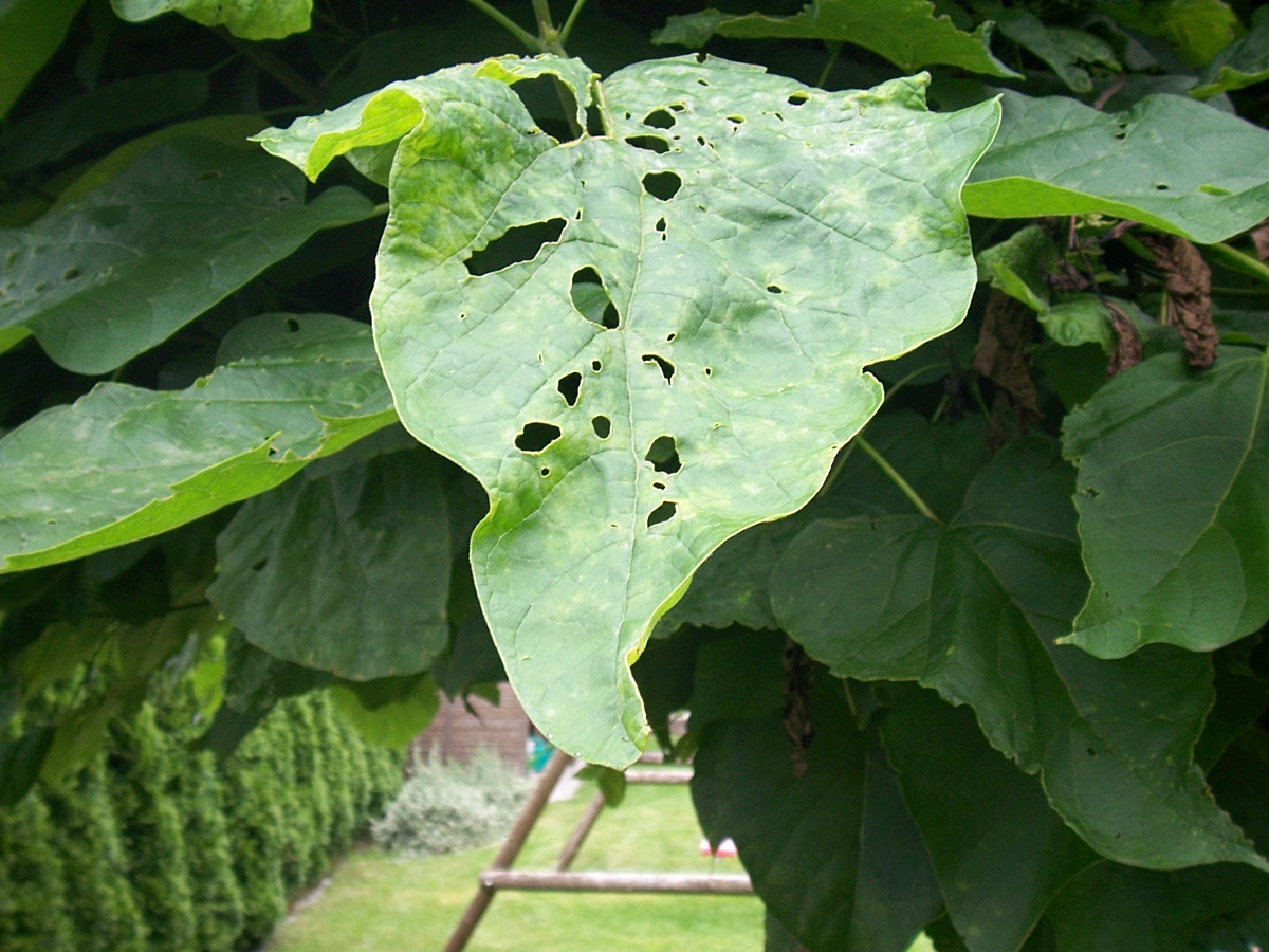 Unsere Catalpa macht uns in diesem Jahr sorgen. Viele Blätter sind durchlöchert. Manche der Blätter rollen sich. Was kann dem Baum fehlen??