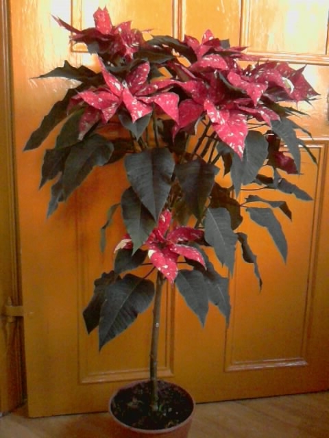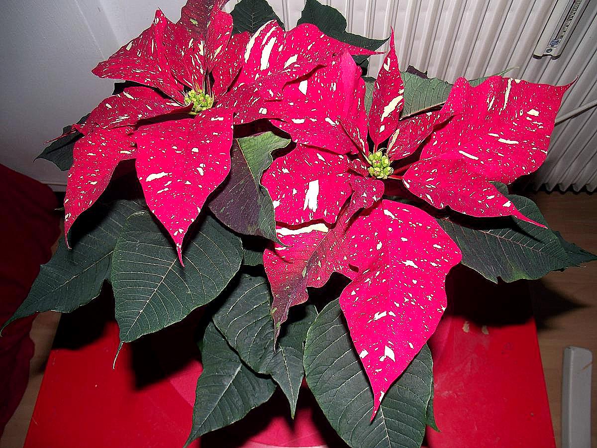 Hast Du eine Laterne vor dem Fenster? Normalerweise müsste er die Hochblätter bekommen, sobald die Lichtdauer pro Tag unter 8 Stunden fällt. So les ich es überall und so war es auch bei mir.