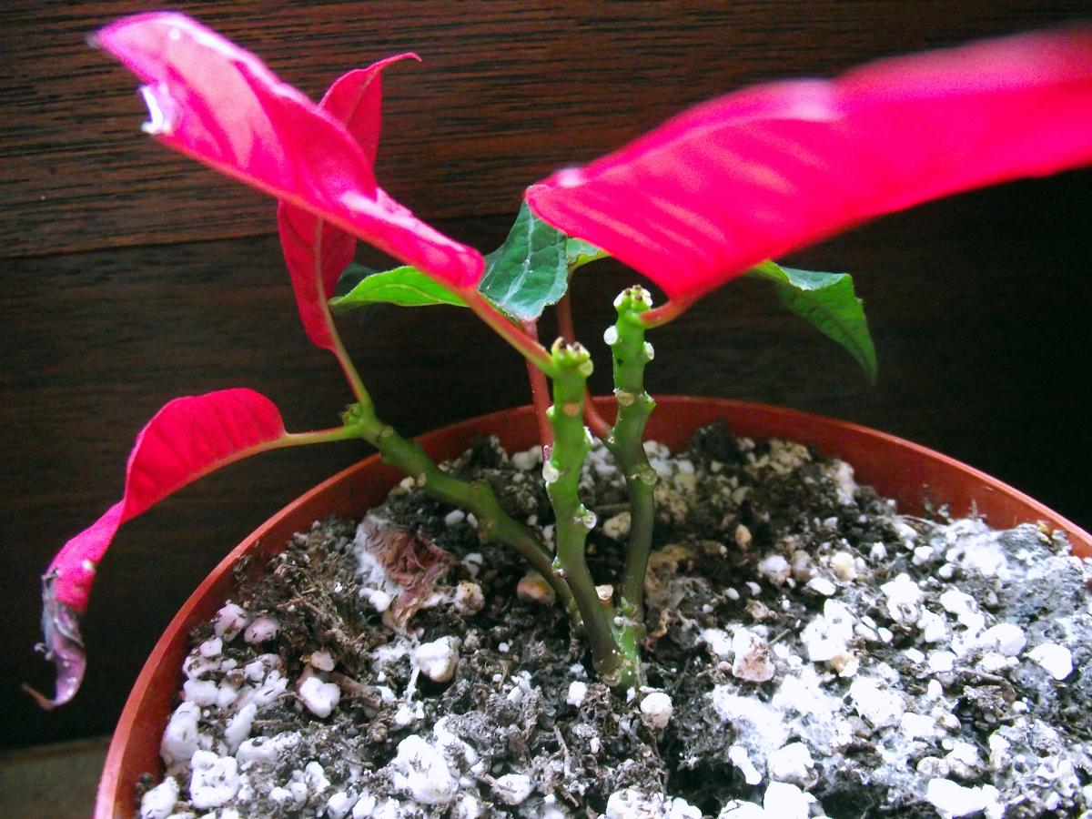 Hast Du eine Laterne vor dem Fenster? Normalerweise müsste er die Hochblätter bekommen, sobald die Lichtdauer pro Tag unter 8 Stunden fällt. So les ich es überall und so war es auch bei mir.