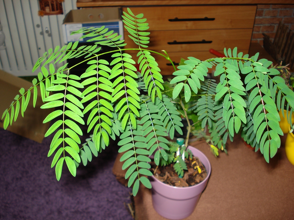 dieses Jahr ist ein mittlerweile recht stattlich herangewachsenes Pflänzchen -siehe Bild- einfach so bei mir gekeimt, ohne bewusst ausgesät worden zu sein. Der Keimling/Sämling sah dem einer Mimose nicht unähnlich und auch sonst erinnert mich die Pflanze an eine Mimose... Aber: sie verhält sich so gar nicht wie eine eben solche, sprich Berührungen lassen sie "kalt", nix mimosenhaftes. Nur wenn es dämmert beginnen sich die Blätter einzuklappen... Sehr komisch! Was meint Ihr?