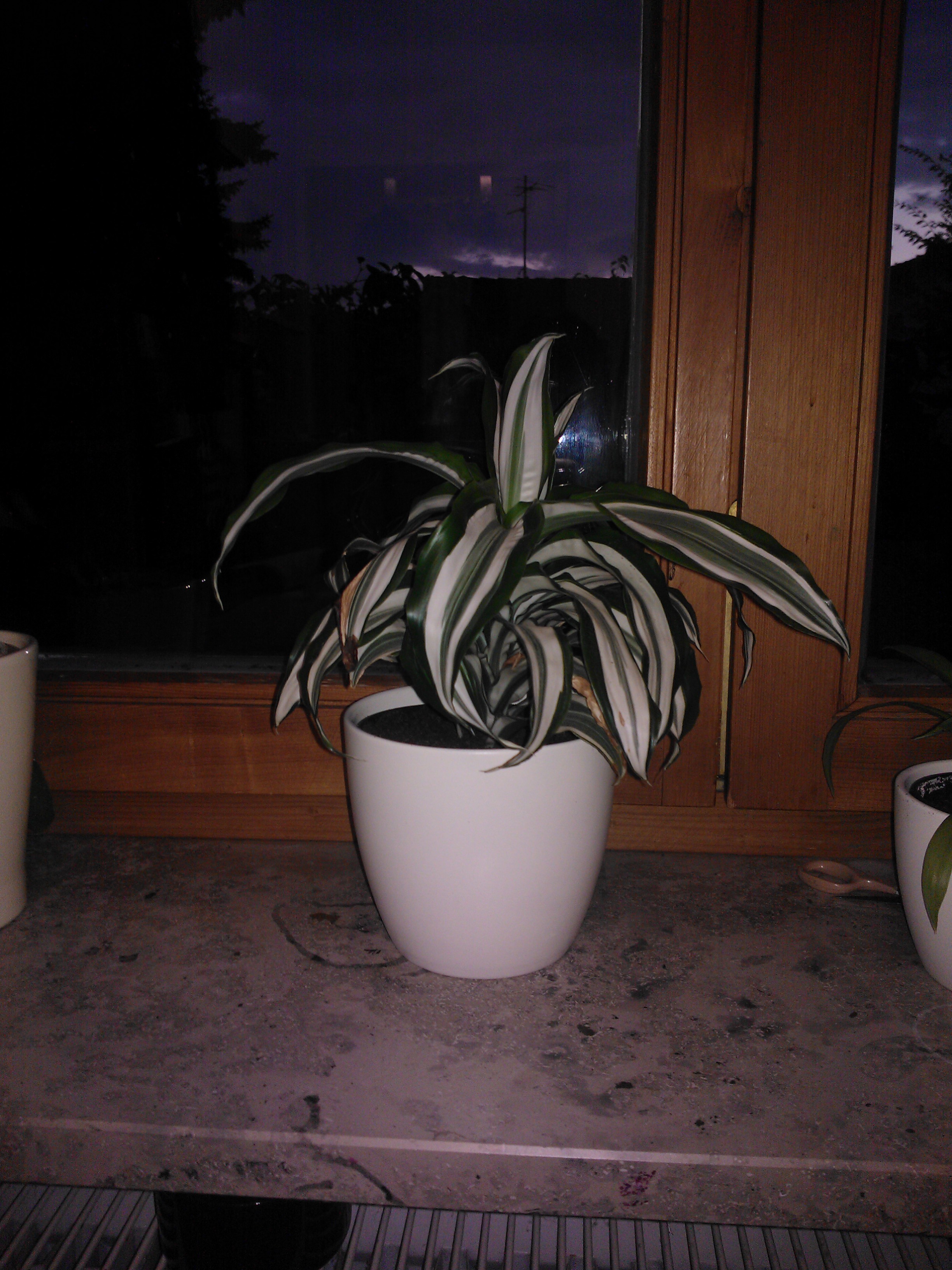 Sah richtig armseelig und mickrig aus. Die Blätter waren braun und vertrocknet, Wurzeln kaum mehr vorhanden. Ohne große Hoffnung hab ich sie einfach in frische Erde gepackt und kräftig gegossen. Nun den Sommer über mehr oder weniger gedüngt und auch alle hässlichen braunen Blätter abgeschnitten.