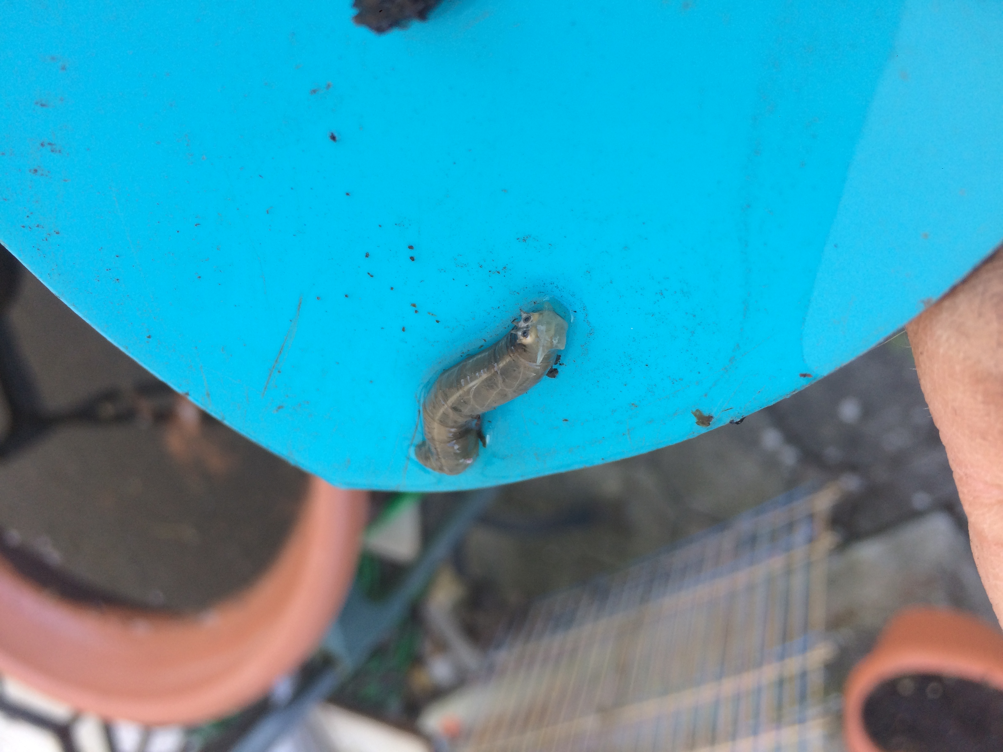 Gestern in einem Untersetzer mit stehendem Wasser unter einem Blumentopf gefunden.