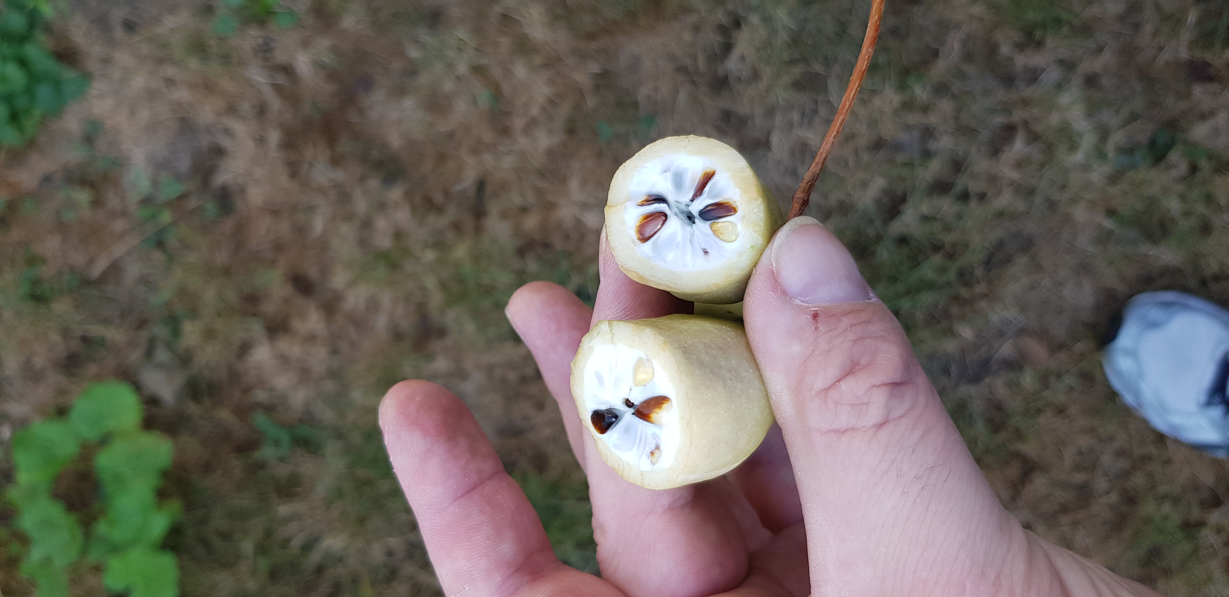 Gucke mal unter Akebie. Die Früchte sind essbar...