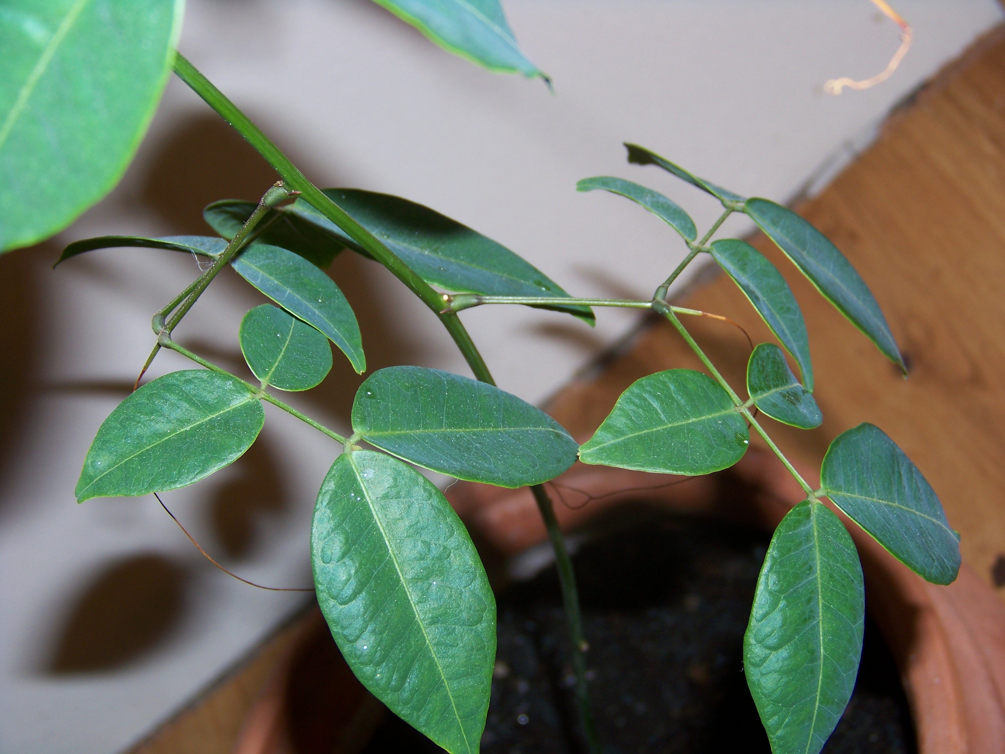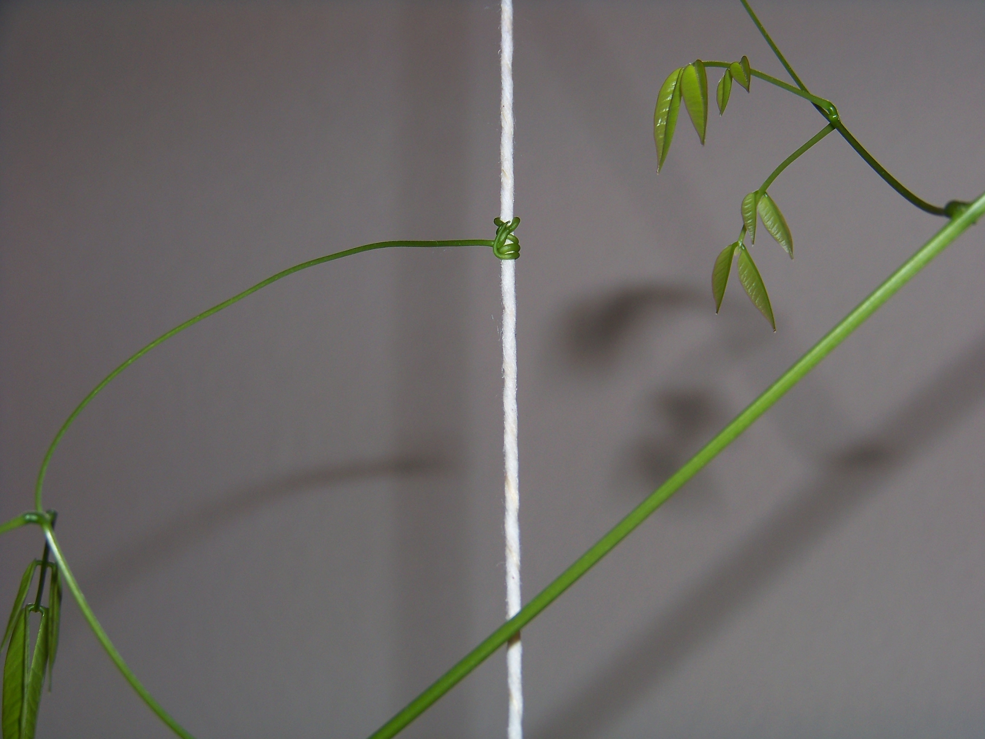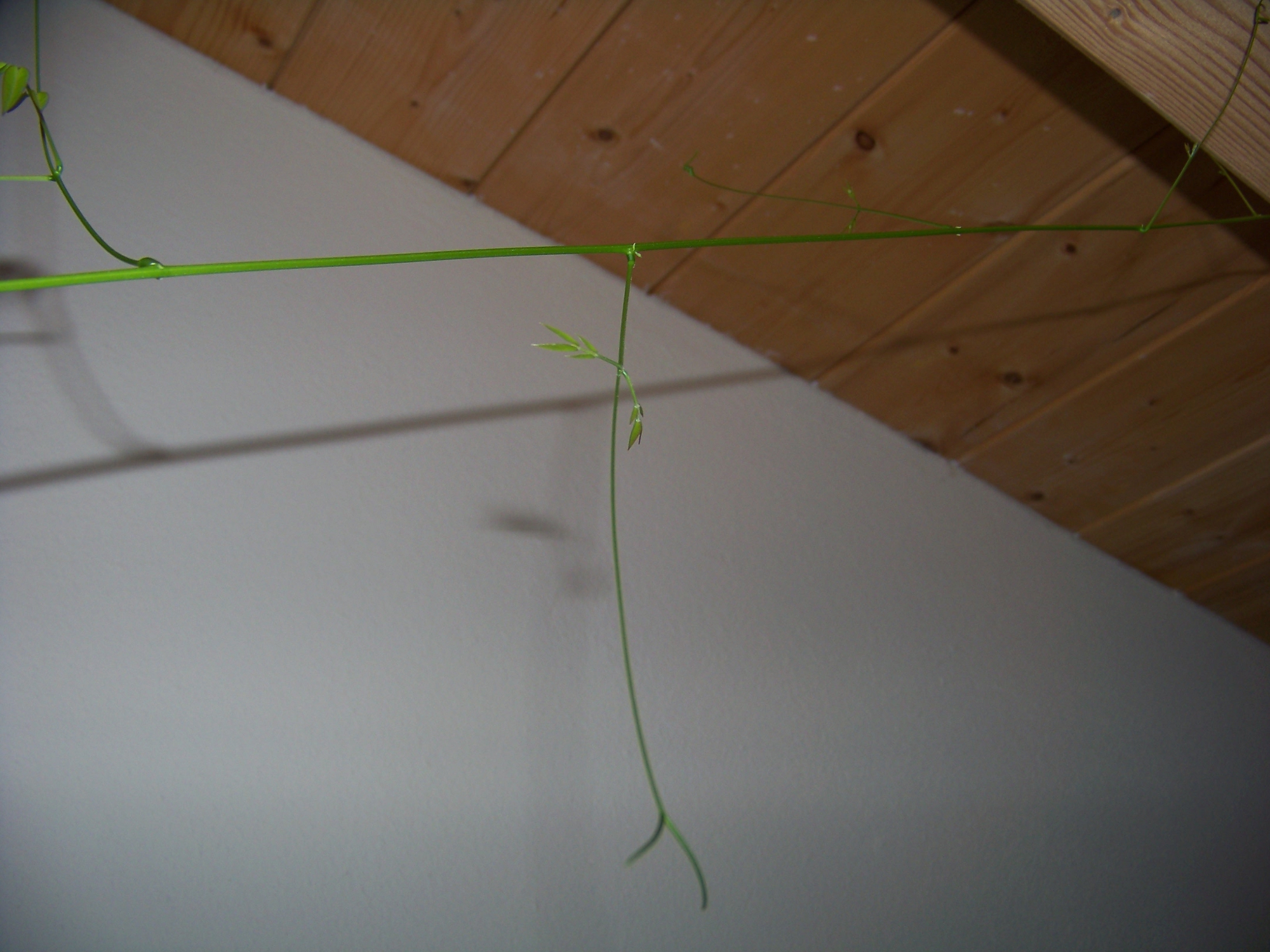 Es handelt sich vermutlich um eine Kletterpflanze, die aus einer kastanienähnlichen Knolle (oder wie man das auch immer nennt) gewachsen ist.